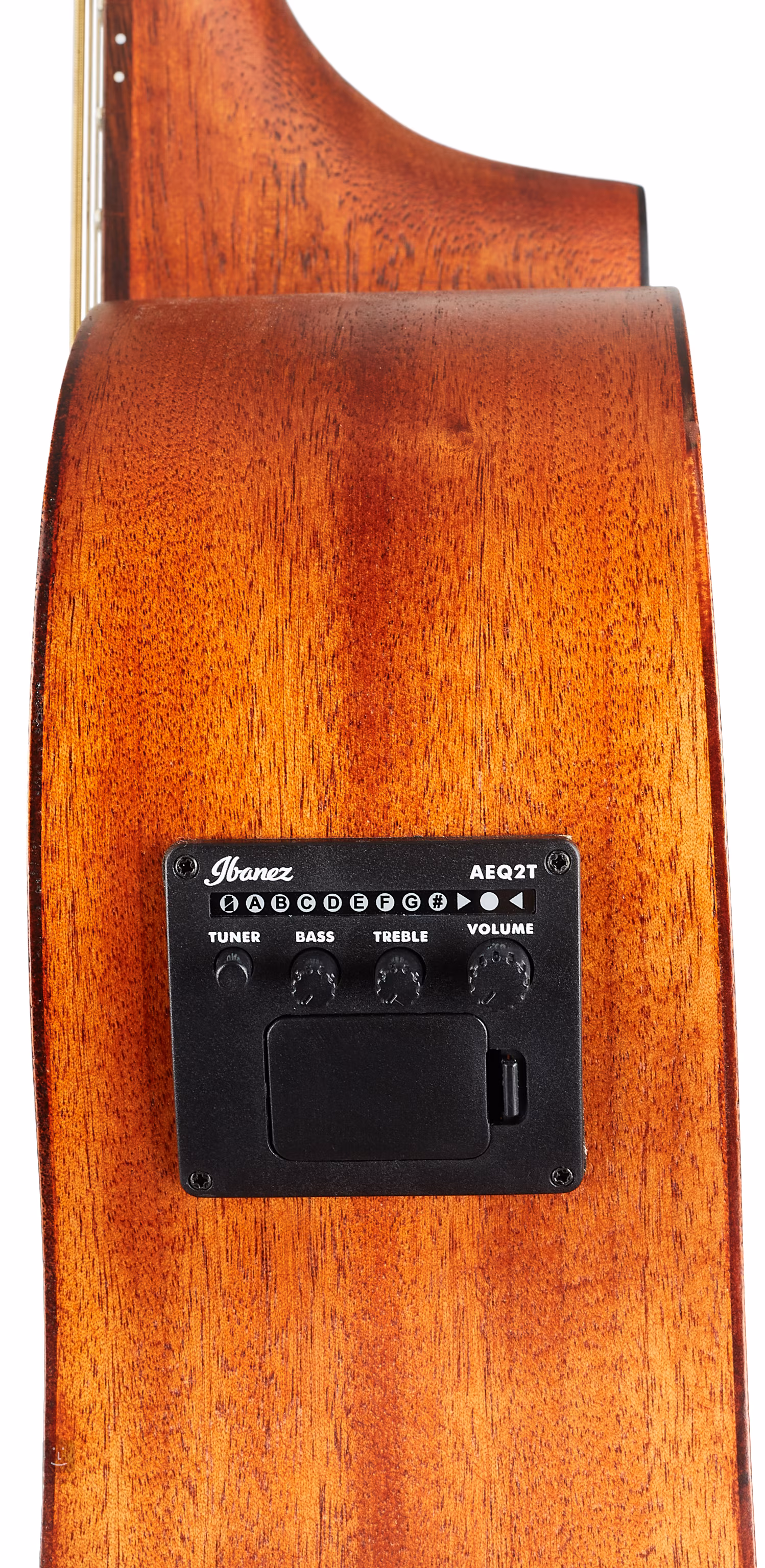 Wzmocnienie dźwięku zapewnia przetwornik piezoelektryczny subwoofera Ibanez AEQ-2T oraz przedwzmacniacz z dwupasmowym EQ i wbudowanym tunerem.