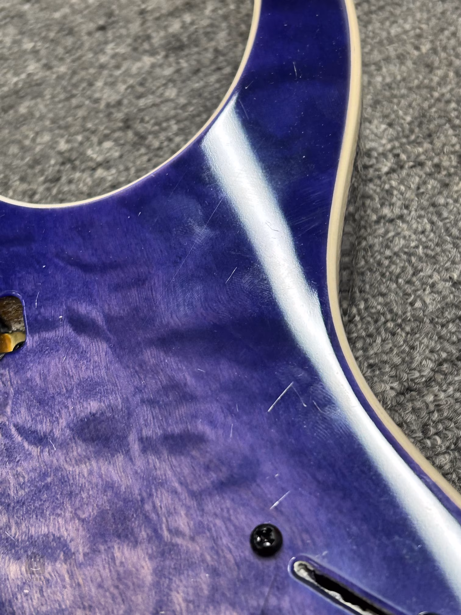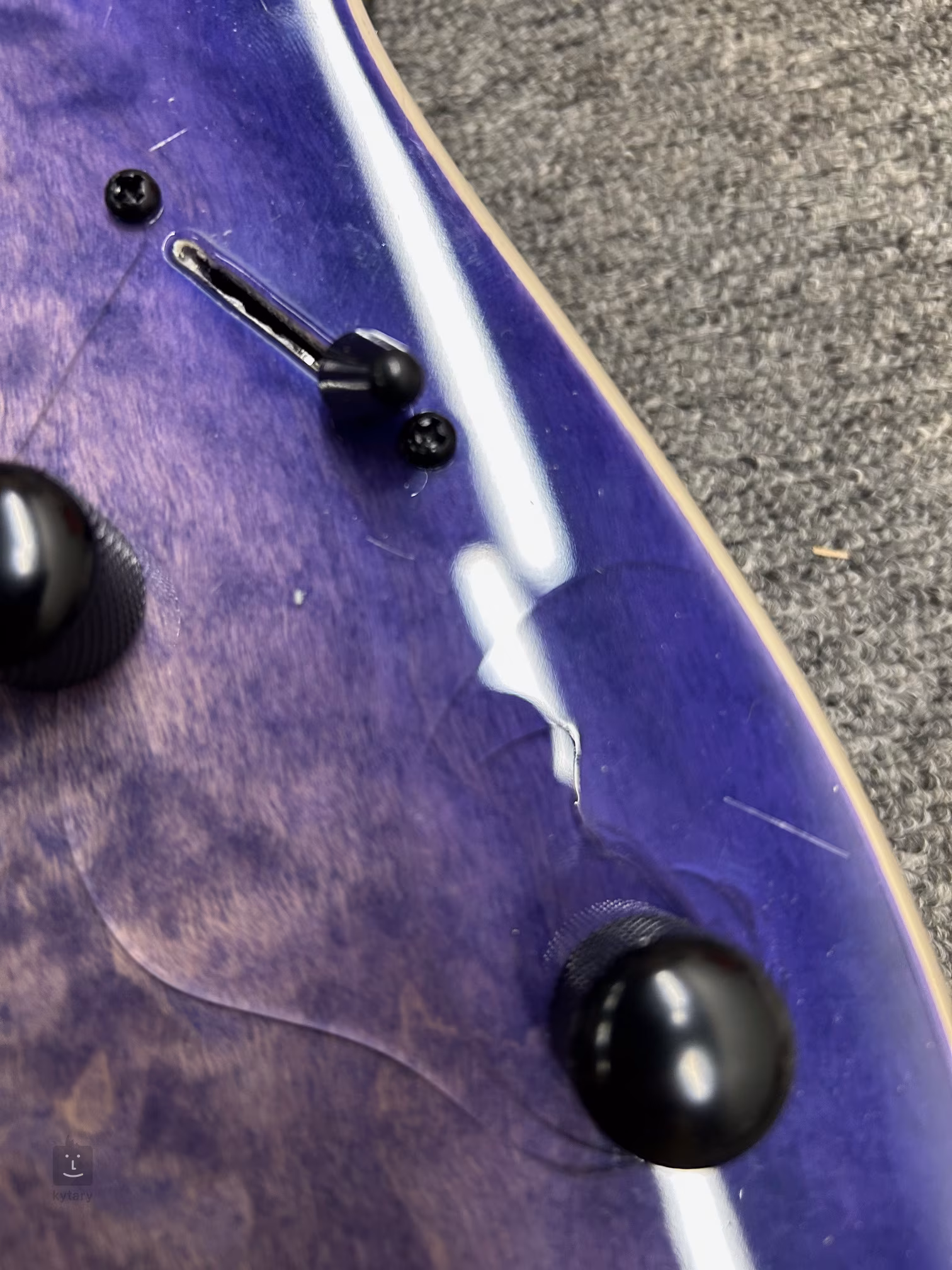 Uszkodzenie lakieru na przedniej części korpusu instrumentu (patrz zdjęcie).