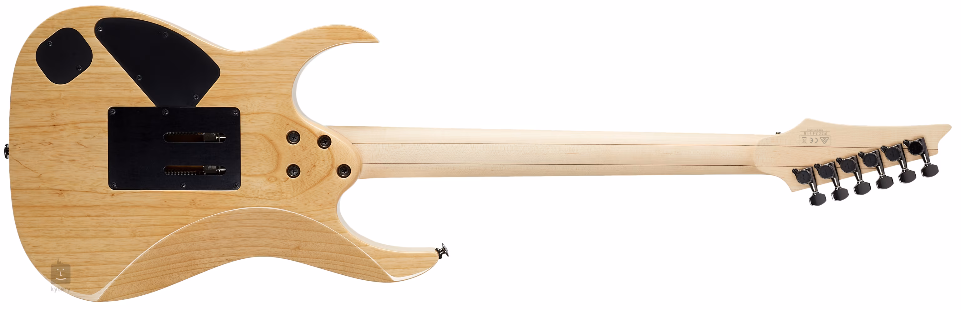 Struny z jednej strony trzymane są w czarnych tuningach, a z drugiej w podwójnym tremolo Edge, za pomocą którego możesz ubarwić swoją grę efektownymi efektami dźwiękowymi. Blokady na progu zerowym gwarantują stabilność strojenia przy częstym używaniu dźwigni tremolo. Wygląd gitary podkreśla woodgrainowe wykończenie korpusu oraz logo Ibanez Prestige na główce.