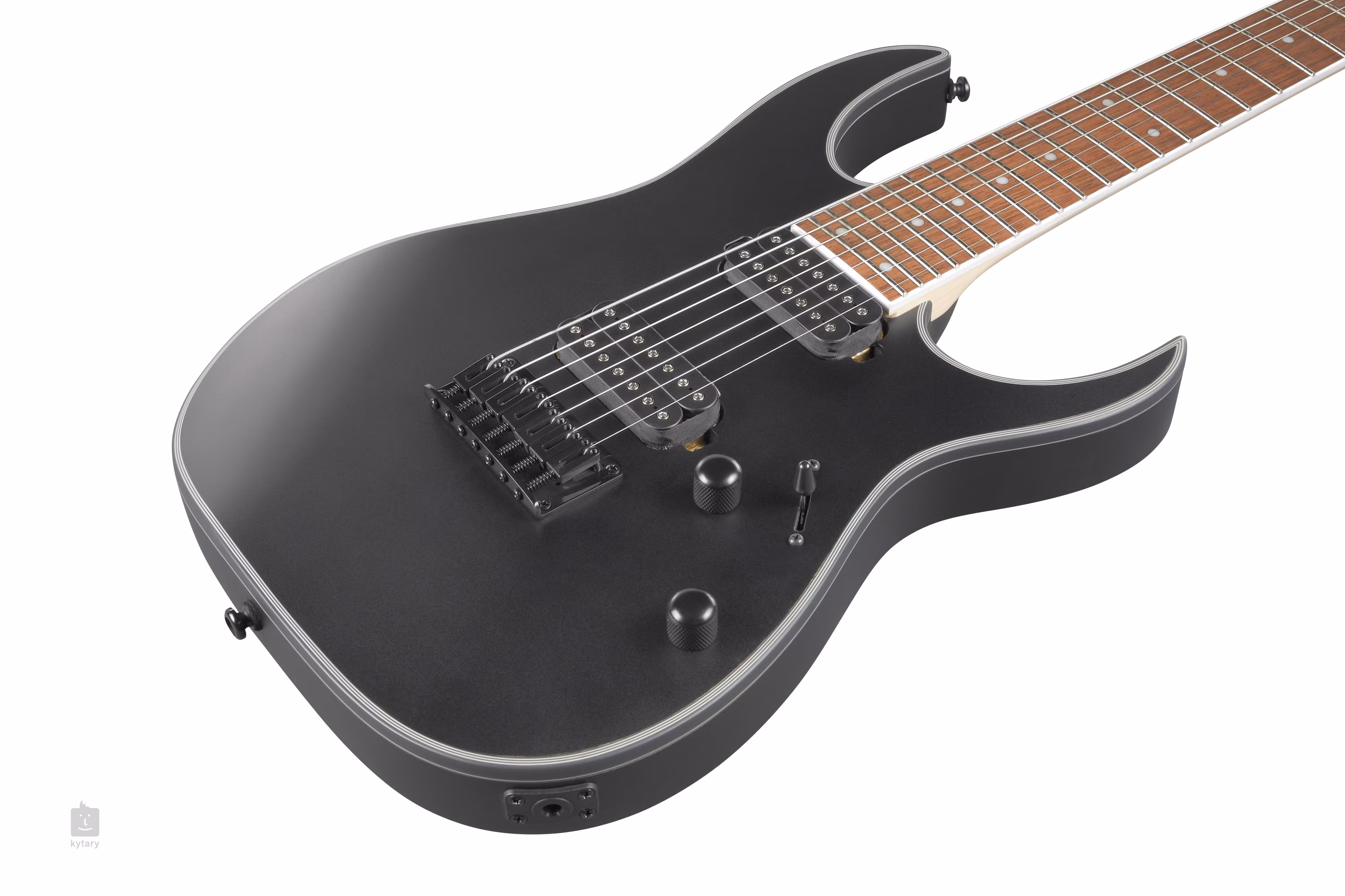 Korpus siedmiostrunowej gitary RG7421EX-BKF wykonany jest z meranti. Szybki klonowy gryf o profilu Wizard II-7 przyklejony jest do podstrunnicy z jatoby wyposażonej w dwadzieścia cztery progi w rozmiarze jumbo. Kropki na podstrunnicy ułatwiają orientację.