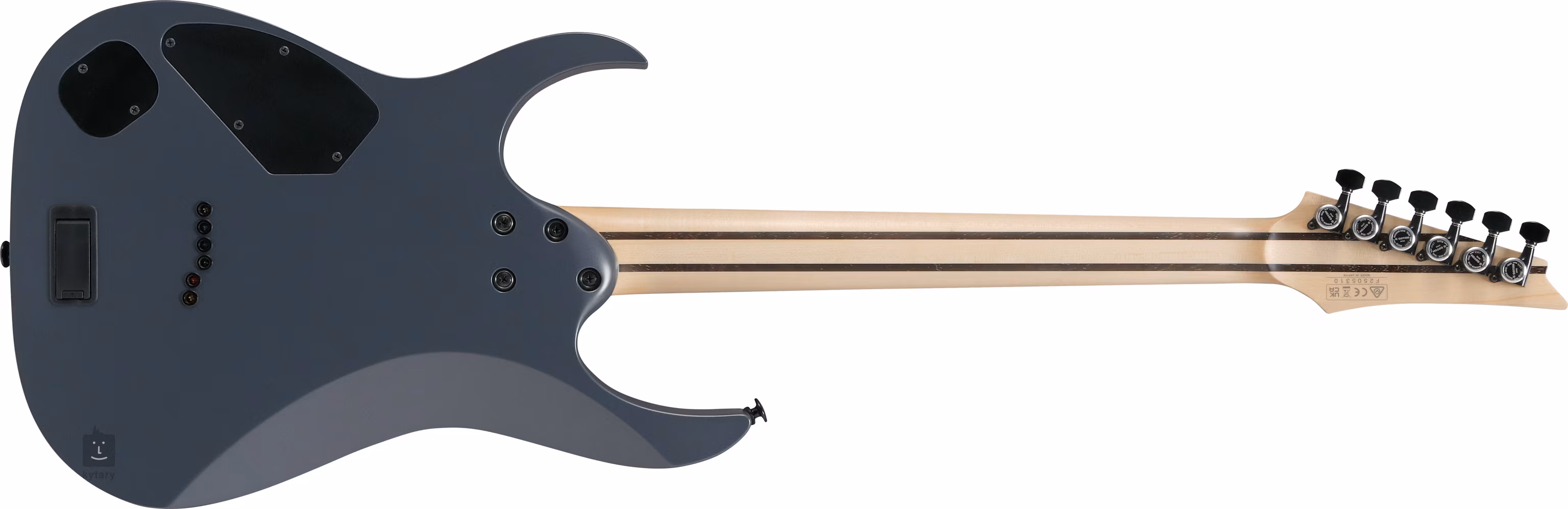 Ergonomicznie ukształtowany korpus gitary elektrycznej RGR5121RB-GRF jest wykonany z drewna lipowego. Do szybkiego gryfu z pięciu kawałków klonu i wenge o profilu Super Wizard HP przyklejono palisandrowy podstrunnicę z dwudziestoma czterema progami ze stali nierdzewnej w rozmiarze Jumbo. Zmodyfikowane krawędzie progów zapewniają optymalny komfort gry (Prestige fret edge treatment). Orientację na gryfie ułatwiają przesunięte perłowe punkty pozycyjne (Mother-of-Pearl) i luminescencyjne punkty na boku.