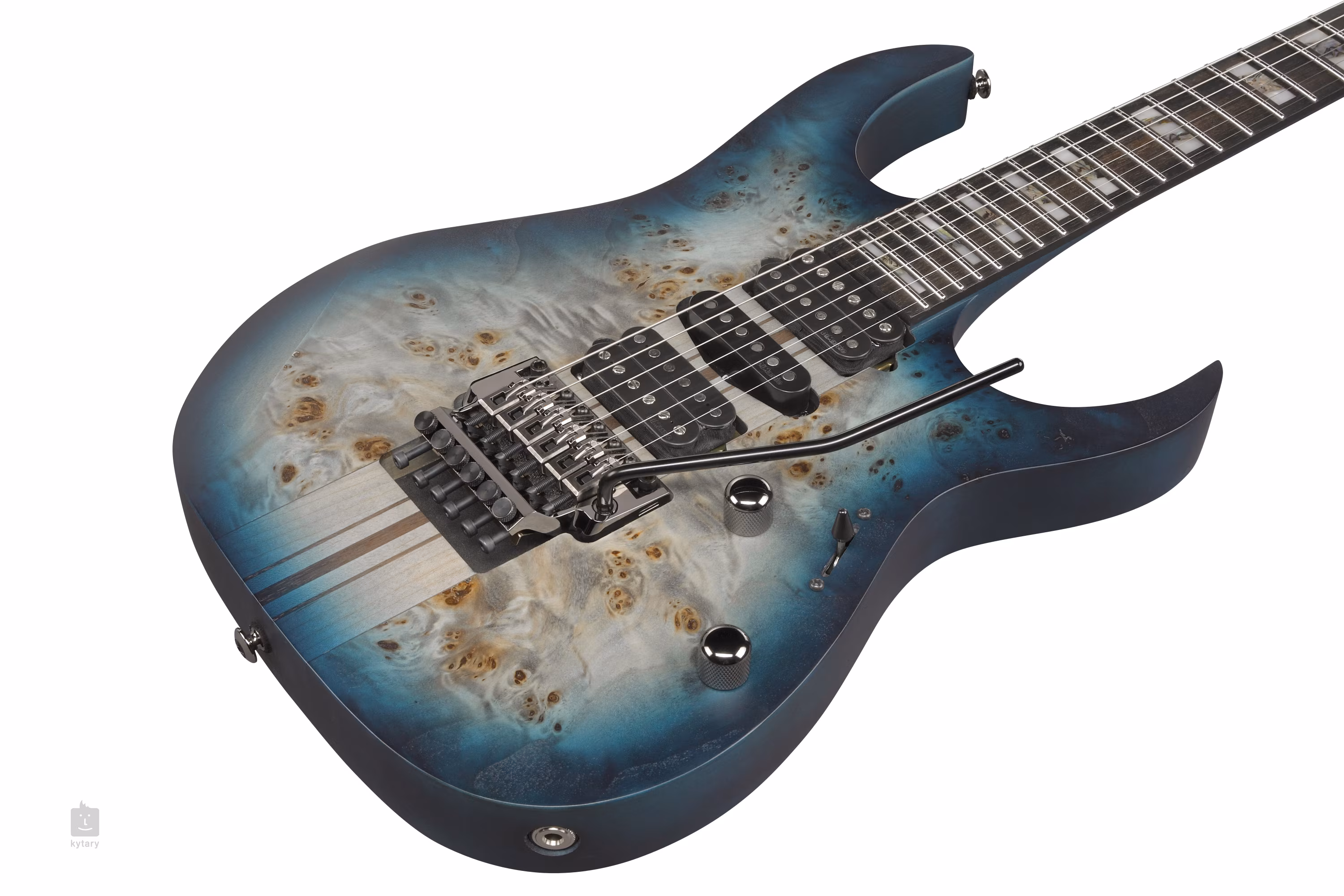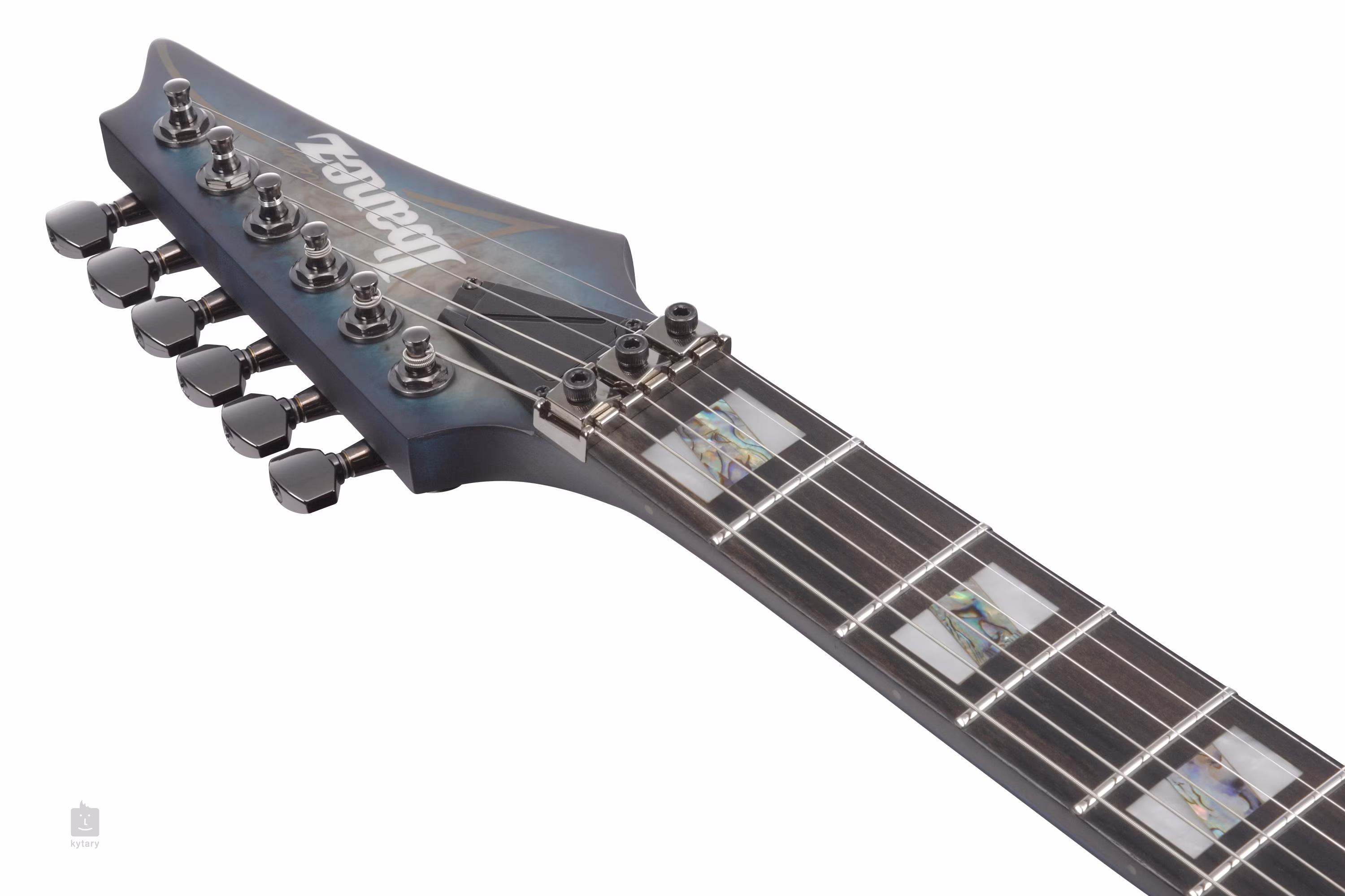 Limonkowy korpus modelu RGT1270PB-CTF ozdobiony jest spektakularnym topem z topolowego forniru o grubości 3 mm i wykończeniem Cosmic Blue Starburst Flat. Cienka szyjka o profilu Wizard III składa się z siedmiu kawałków klonu i orzecha włoskiego. Dwadzieścia cztery progi Jumbo ze stali nierdzewnej dzielą hebanową powierzchnię podstrunnicy. Zaokrąglone krawędzie progów zapewniają większy komfort gry (obróbka krawędzi progów Premium), a orientację po powierzchni podstrunnicy ułatwiają bloki z imitacji masy perłowej i abalonu oraz świecące kropki z boku.
