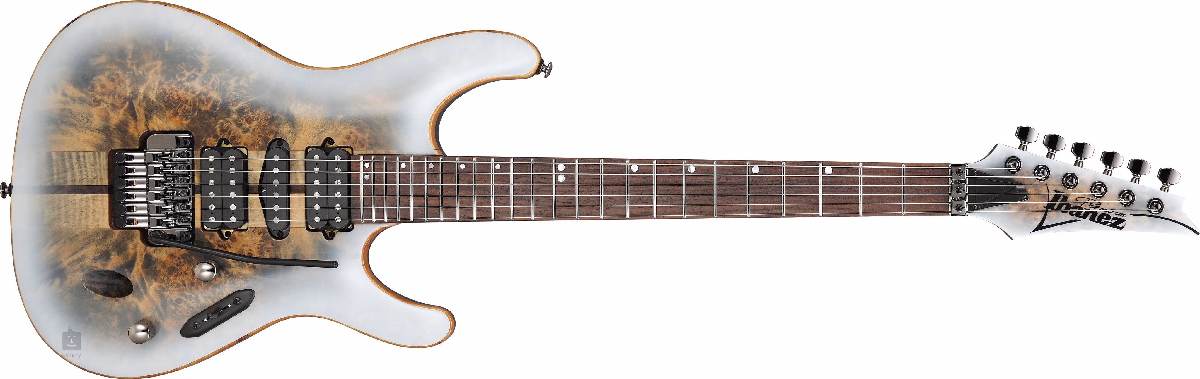 Seria S japońskiej marki Ibanez prezentuje gitary elektryczne typu Super ST z typowymi wycięciami i wyprofilowanym topem jasnego mahoniowego korpusu.