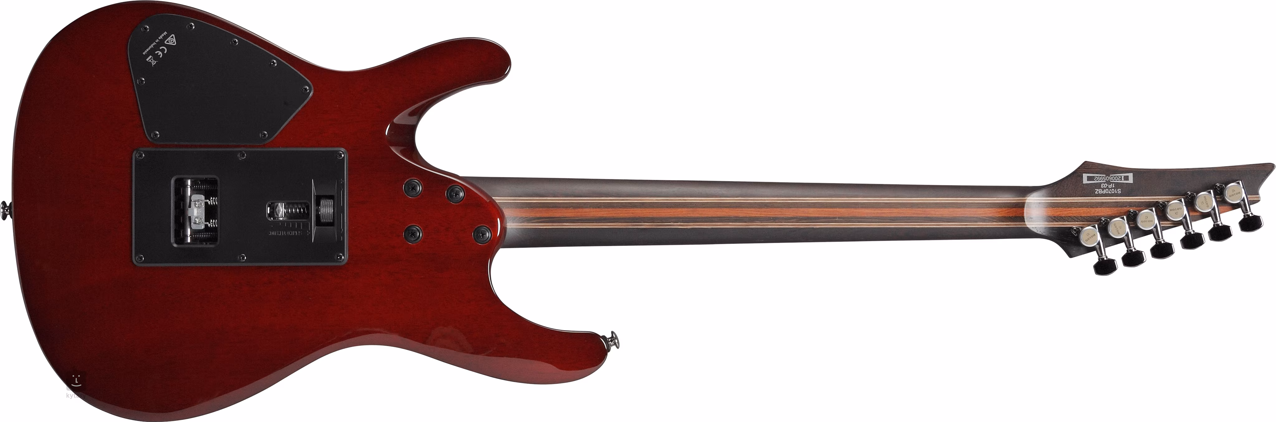 Mahoniowy korpus modelu S1070PBZ-WFB ozdobiony jest efektownym topowym fornirem z topoli burl oraz paskami klonu, orzecha włoskiego i pangi. Podobną mozaikę materiałów oferuje szyjka, wykonana z jedenastu kawałków pangi, klonu, orzecha i bubingi. Palisandrowa podstrunnica podzielona jest na dwadzieścia cztery podstrunnice w rozmiarze jumbo ze stali nierdzewnej i kropkami z masy perłowej.