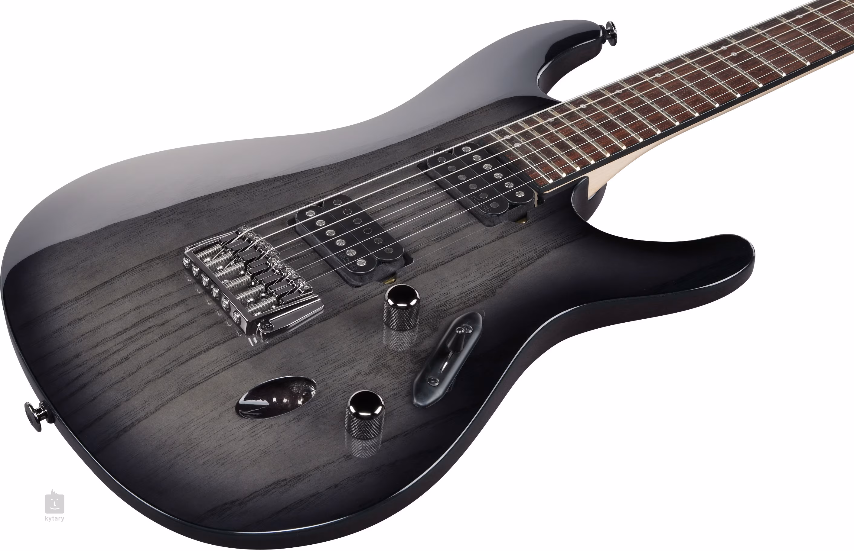 Mahoniowy korpus gitary elektrycznej S6621AH-TGB zdobi jesionowy top i kolorowa powłoka Transparent Gray Burst. Do szybkiego gryfu z pięciu kawałków klonu i orzecha o profilu Super Wizard HP przyklejono palisandrowy podstrunnicę z dwudziestoma czterema progami rozmiaru Jumbo. Tytanowe wzmocnienie gryfu gwarantuje jego maksymalną stabilność i odporność na czynniki zewnętrzne. Zmodyfikowane krawędzie progów zapewniają optymalny komfort gry (Prestige fret edge treatment).