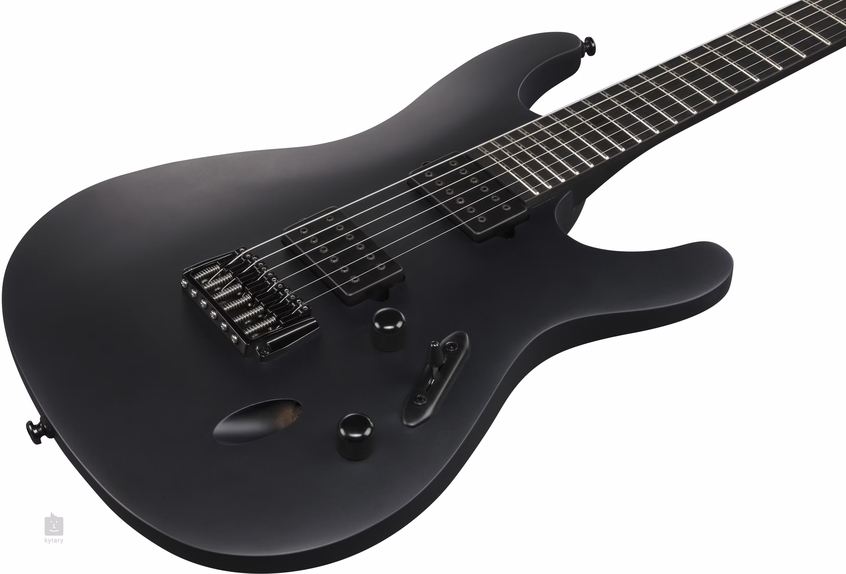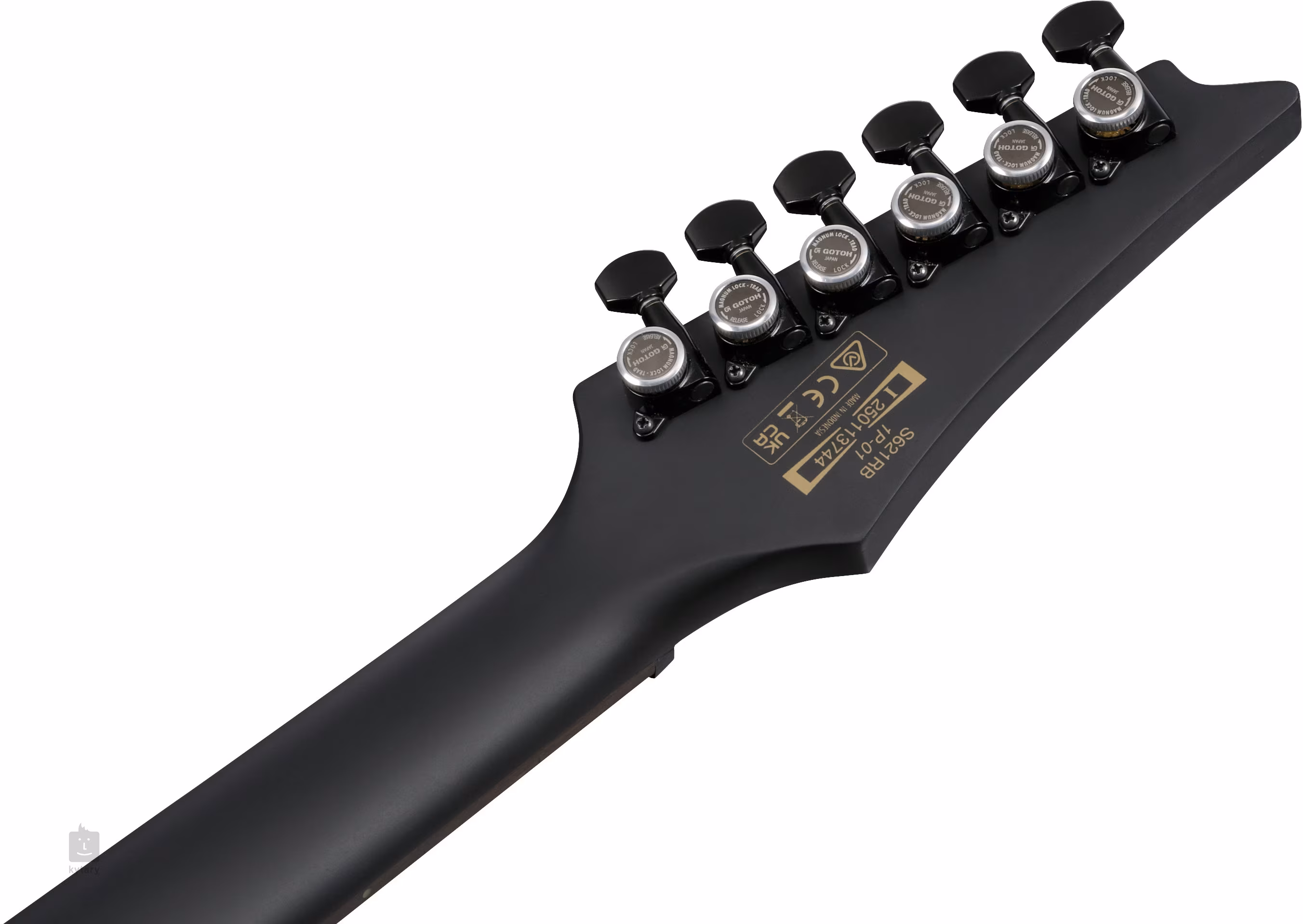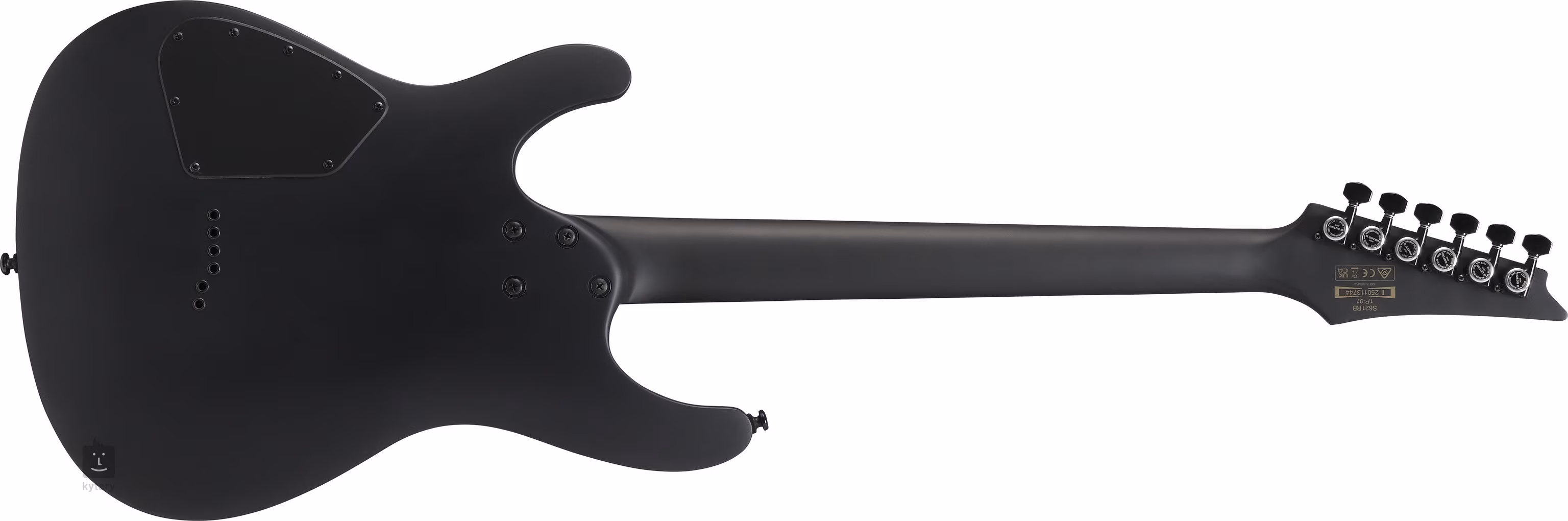 Korpus gitary Iron Label S721RB Black Flat w stylu Super ST S (Saber) wykonany jest z drewna okoumé. Do przykręcanego gryfu, złożonego z pięciu kawałków klonu i orzecha o profilu Wizard III, przyklejona jest podstrunnica z hebanu, wyposażona w dwadzieścia cztery progi w rozmiarze Jumbo. W orientacji nawet w półmroku pomogą Ci boczne kropki luminescencyjne.