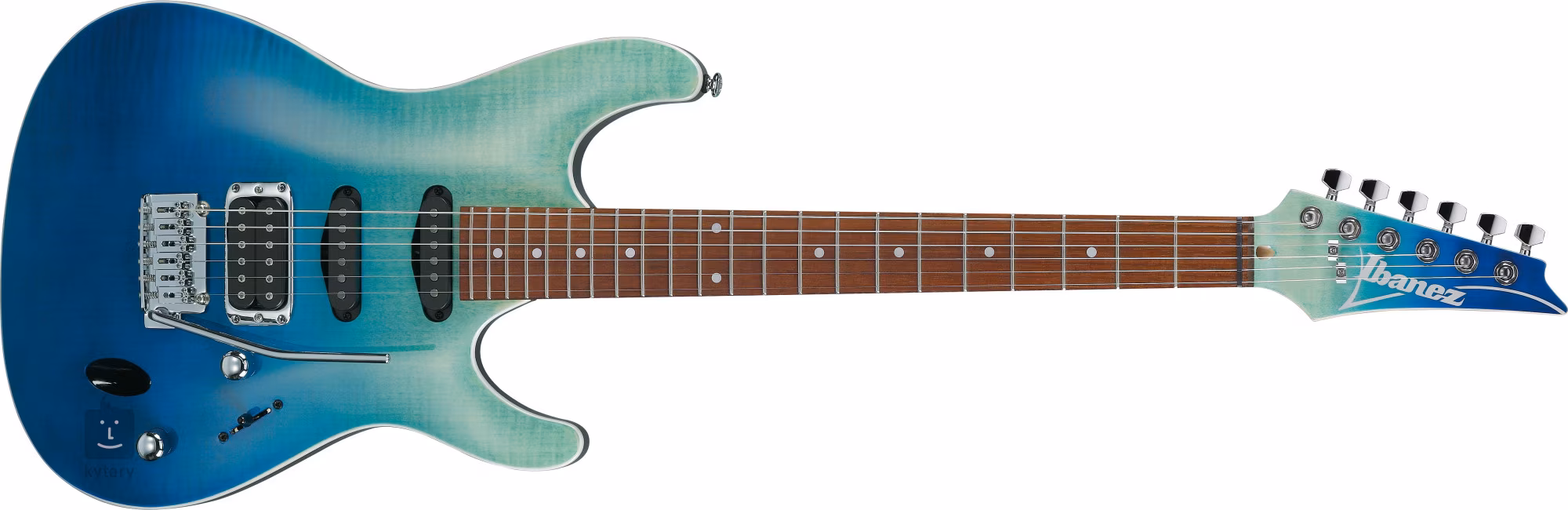 Korpus SA260FM-BRG z drewna okoumé jest ozdobiony fantazyjnym topem z klonu płomienistego i wykończeniem Blue Reef Gradation. Klonowa szyjka jest przyklejona do podstrunnicy jatoba z dwudziestoma dwoma progami średniej wielkości. Białe kropki na podstrunnicy ułatwiają orientację.