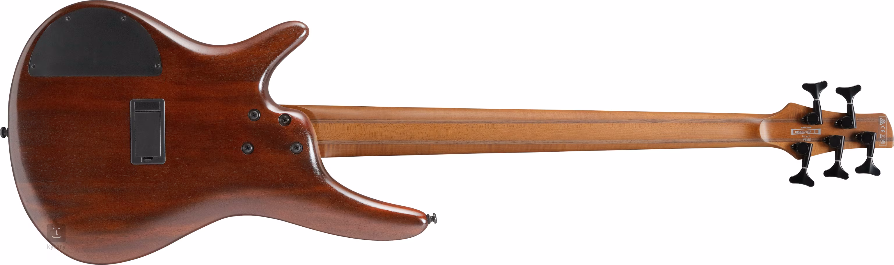 Dotyczy to również pięciostrunowej gitary basowej Ibanez SR505A-MHL z korpusem z drewna okoumé, szybkim, solidnym gryfem z pięciu kawałków pieczonego klonu (roasted maple) i orzecha oraz palisandrową podstrunnicą z dwudziestoma czterema progami rozmiaru Medium. Orientację na gryfie ułatwiają owalne, perłowe znaczniki pozycji (abalone).