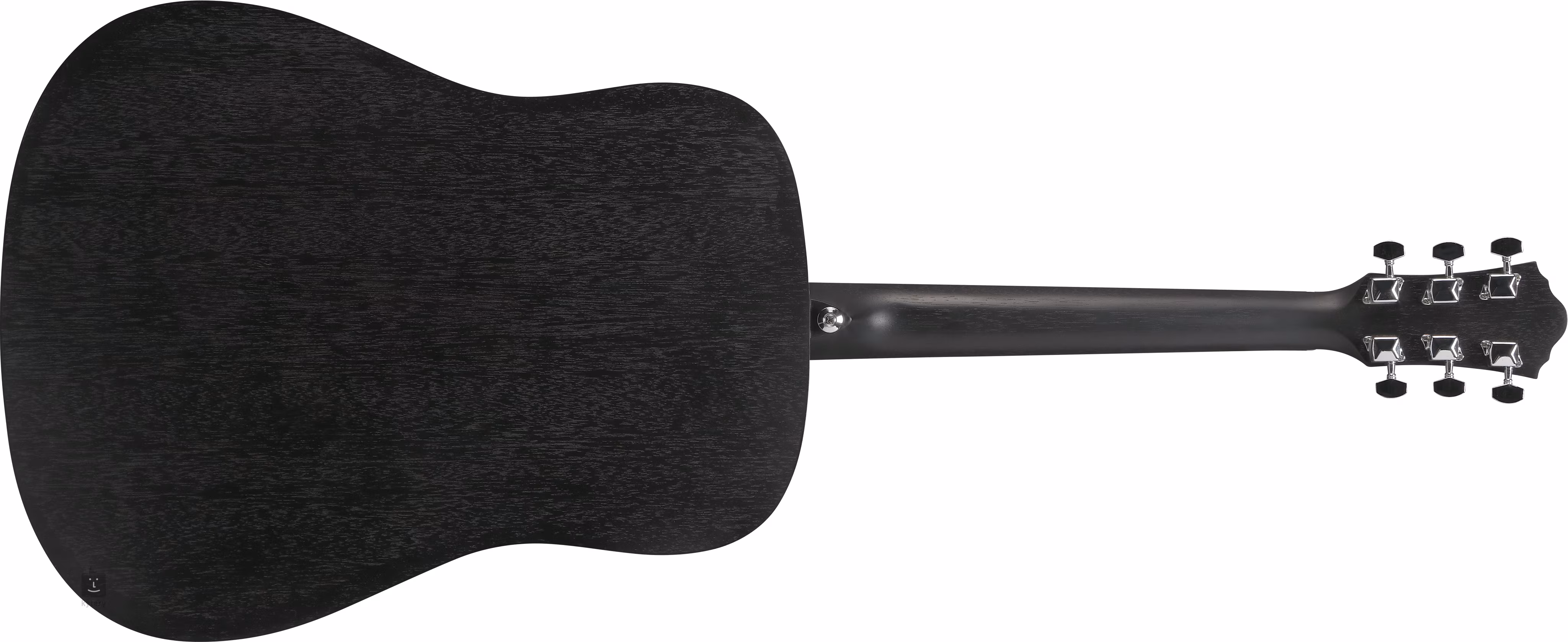 Duży rezonansowy korpus gitary akustycznej wykonany jest z laminowanego meranti. Do szyjki meranti przyklejona jest podstrunnica z drewna nandu wyposażona w dwadzieścia progów. Struny są zamontowane w chromowanych maszynkach do strojenia i podstrunnicy z drewna nandu. Kołki Ibanez Advantage oferują zalety łatwej obsługi i mocnego mocowania strun w porównaniu do standardowych modeli. Stylowe wykończenie jest podkreślone przez wykończenie w kolorze Weathered Black Open Pore i czarny pickguard.