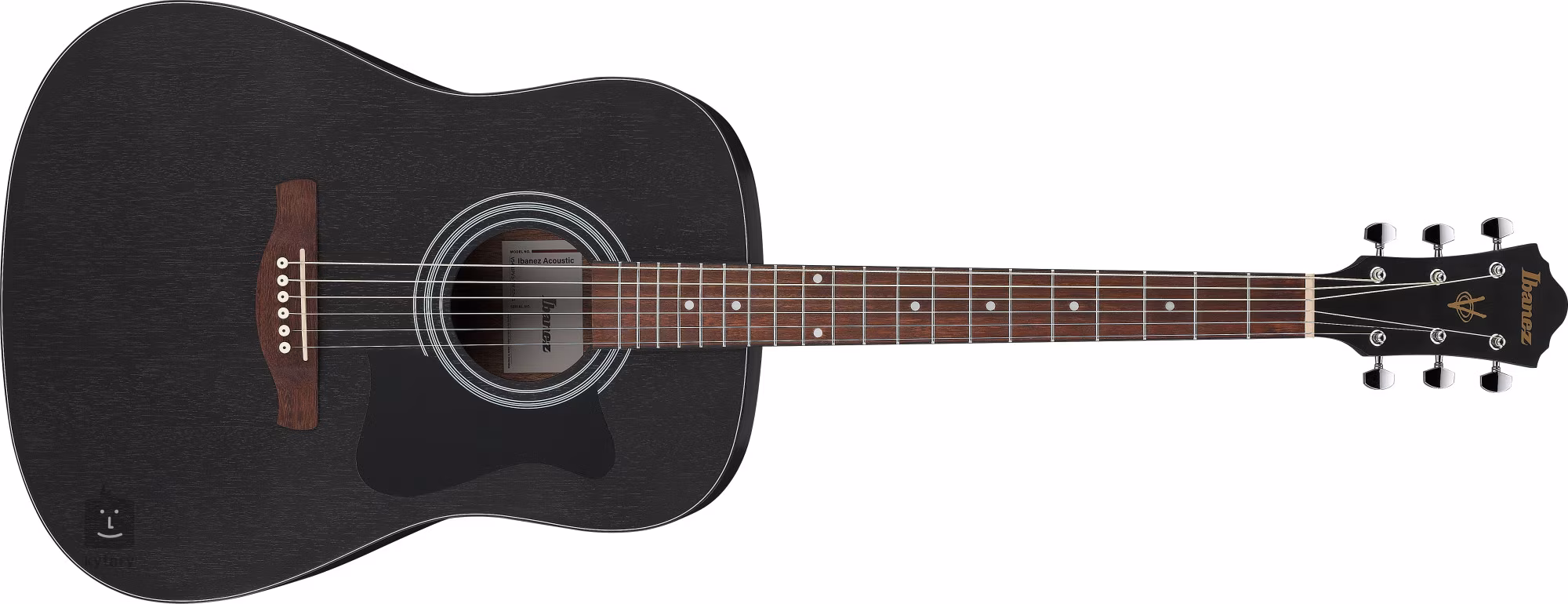 Zestaw gitarowy Ibanez Jampack V54NJP-WK zawiera gitarę akustyczną V Series Dreadnought, gig bag, chromatyczny tuner z klipsem, pasek do gitary, futerał na akcesoria i kostki.