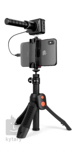 Uniwersalny cyfrowy mikrofon "Shotgun" z możliwością podłączenia kamery lub telefonu z 4x przewodami połączeniowymi, wielofunkcyjnym statywem iKlip Grip Pro oraz osłoną przeciwwietrzną. Oferuje on znaczną poprawę dźwięku z Twojego urządzenia mobilnego.