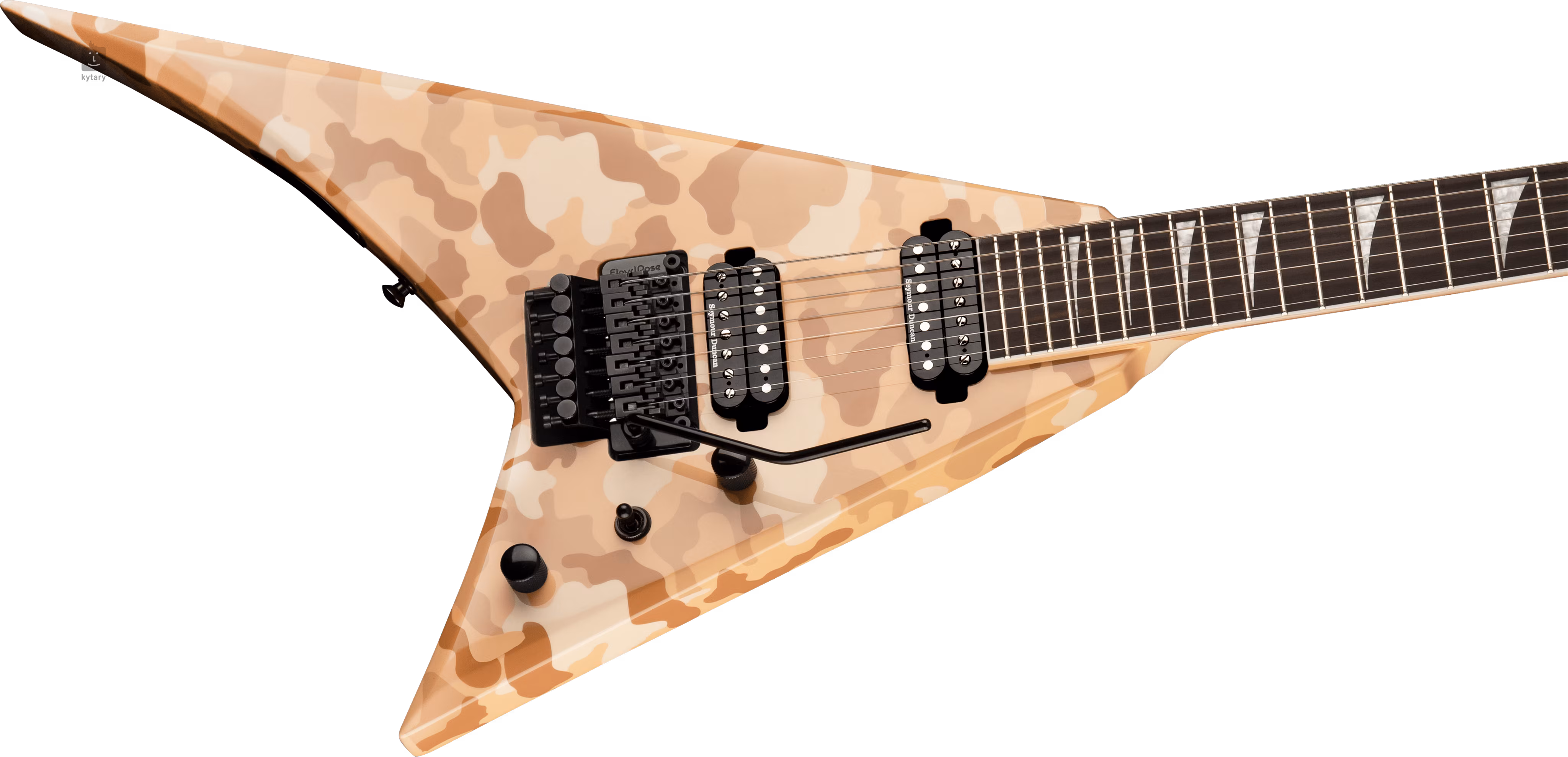 Struny są umieszczone w maszynkach do strojenia Gotoh i podwójnym tremolo Floyd Rose Original, które można wykorzystać do dodania imponujących efektów dźwiękowych do swojej gry. Poza blokadą na progu zerowym, dłuższa gauge 673 mm przyczynia się do stabilności strojenia, a Ty docenisz rolki Dunlop z podwójną blokadą przycisków pasków. Stylowy wygląd gitary podkreślają wykończenie w kamuflażu i czarne okucia.