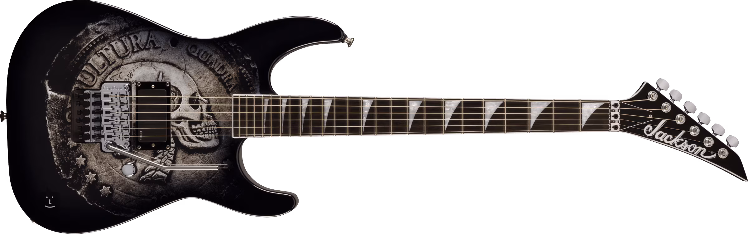 Aktywny przetwornik EMG 81 cobbler humbucker zapewnia brzmieniu instrumentu niezbędną pełnię i precyzyjną artykulację do śpiewania solówek lub łamania akordów, zapewniając jednocześnie gęstość i agresję dla ultraszybkich gitarowych shredów i ostro cyzelowanych rockowych i metalowych riffów. Regulacja ogranicza się do potencjometru głośności. Struny są umieszczone w firmowych maszynkach do strojenia i tremolo Floyd Rose 1000 Series. Stylowe wykończenie podkreśla chromowany osprzęt.