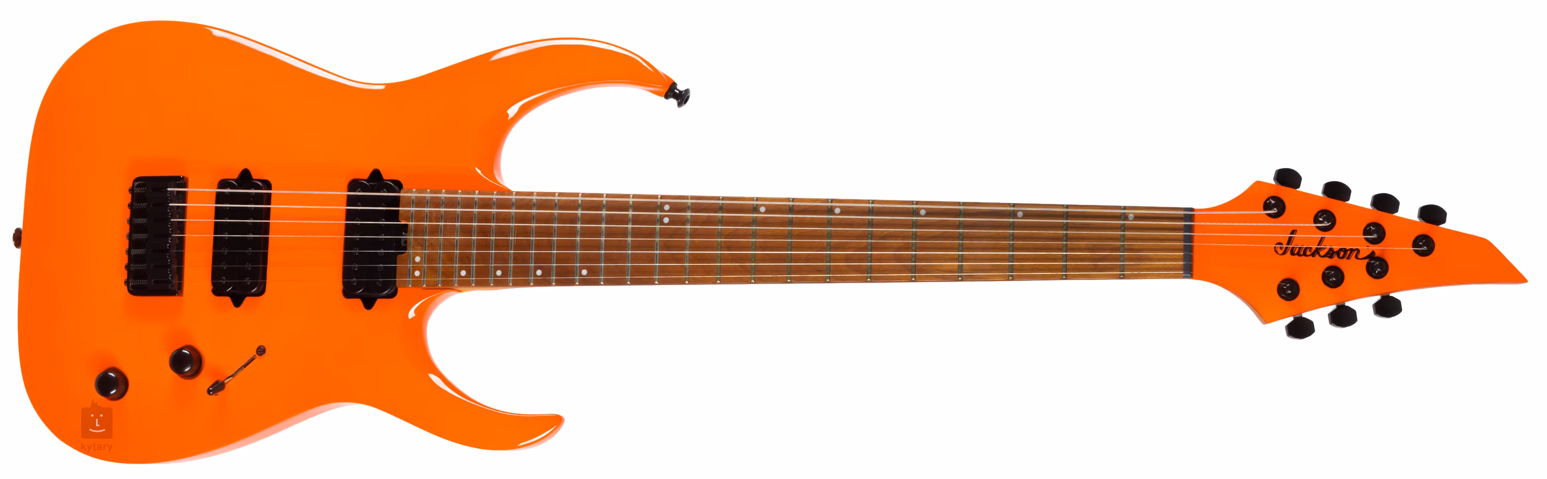 Dwa humbuckery Jackson MM1 zapewniają instrumentowi zrównoważone brzmienie i dynamikę potrzebną do dostarczania bezkompromisowych metalowych riffów, śpiewnych solówek czy łamania akordów. Potencjometry głośności, regulacja barwy dźwięku oraz pięciopozycyjny przełącznik pickupów służą do regulacji brzmienia. Funkcja membrany tonu Push/Pull nie służy do tradycyjnego podziału cewek humbuckera (to oferują przełączniki w pozycji 2 i 4), ale do ominięcia samego potencjometru. Stabilność strojenia i dobra intonacja są zapewnione przez mocowanie strun w firmowych maszynkach do strojenia die-cast oraz solidny, zakotwiczony w korpusie strunnik Jackson HT-7. Stylowy wygląd gitary podkreśla wykończenie w kolorze Neon Orange oraz czarny osprzęt.