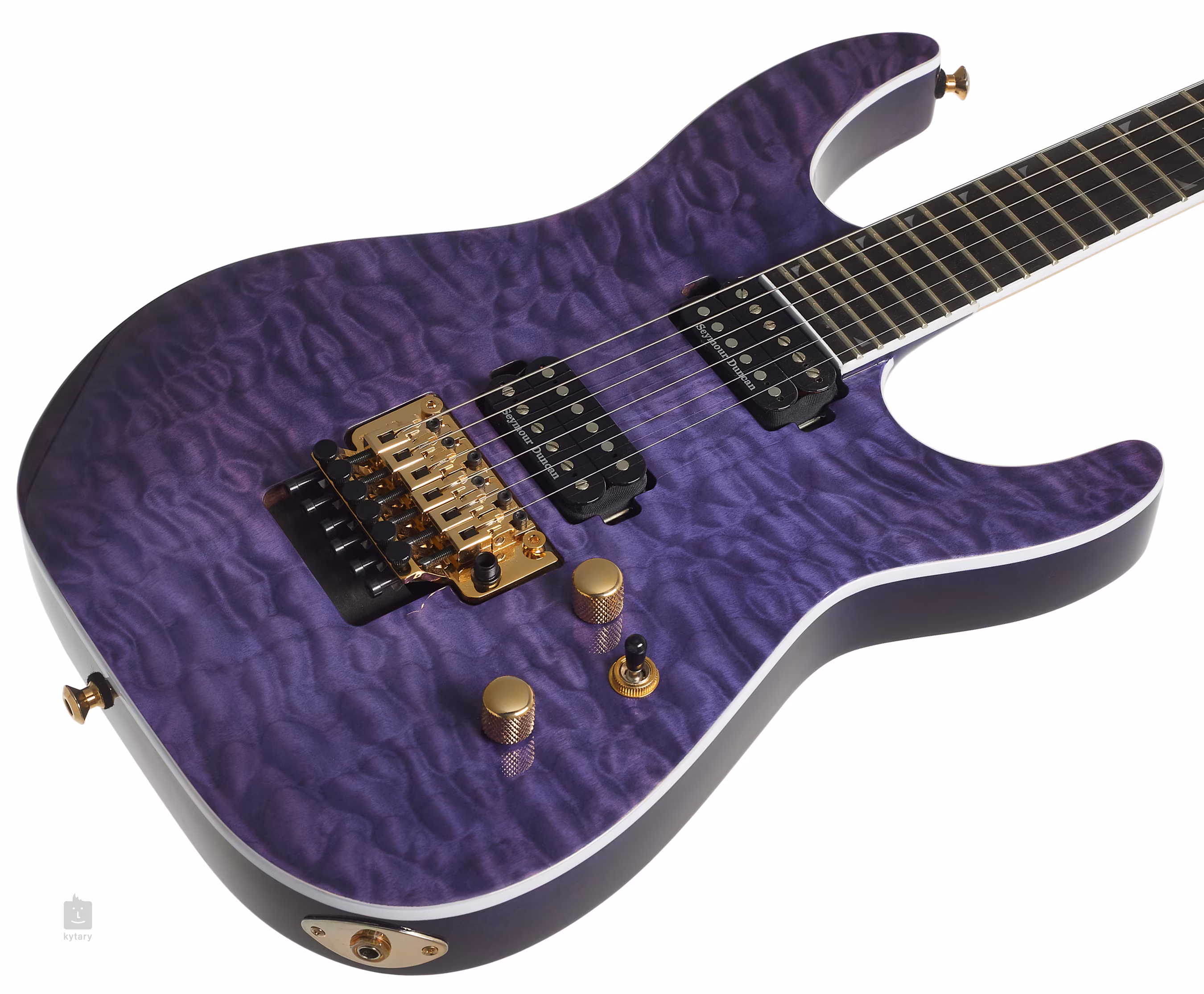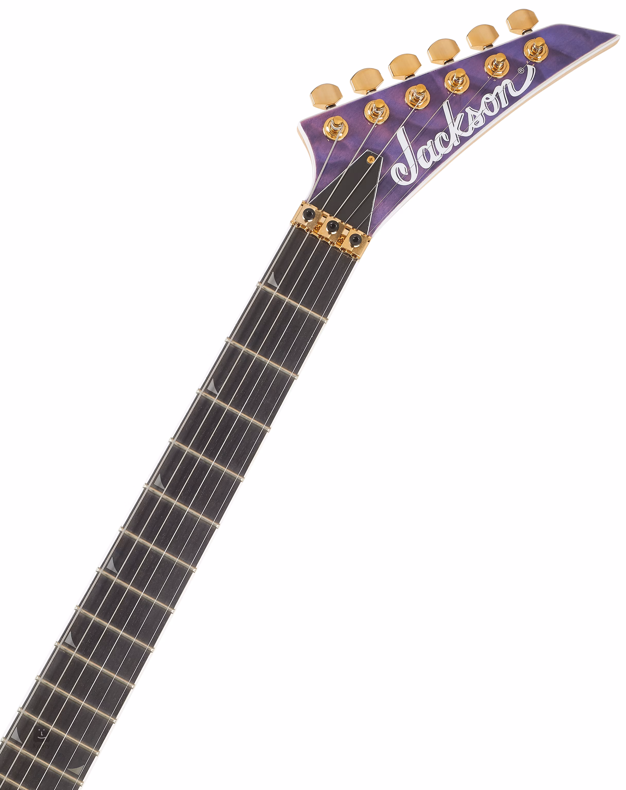 Konstrukcja gitary składa się z mahoniowych skrzydeł korpusu, klonowej okleiny z efektownym wzorem, wykończonej w kolorze Transparent Purple oraz klonowej szyjki wzmocnionej grafitowym usztywnieniem. Takie rozwiązanie ma pozytywny wpływ na sustain instrumentu. Hebanowa podstrunnica wyposażona jest w dwadzieścia cztery progi jumbo. Jej promień spłaszcza się w kierunku korpusu - umożliwiając zarówno wygodne granie riffów przy zerowym progu, jak i komfortowy, ultraszybki shred w wyższych pozycjach. Znaczniki pozycji, takie jak Piranha Tooth, ułatwiają poruszanie się po powierzchni podstrunnicy.