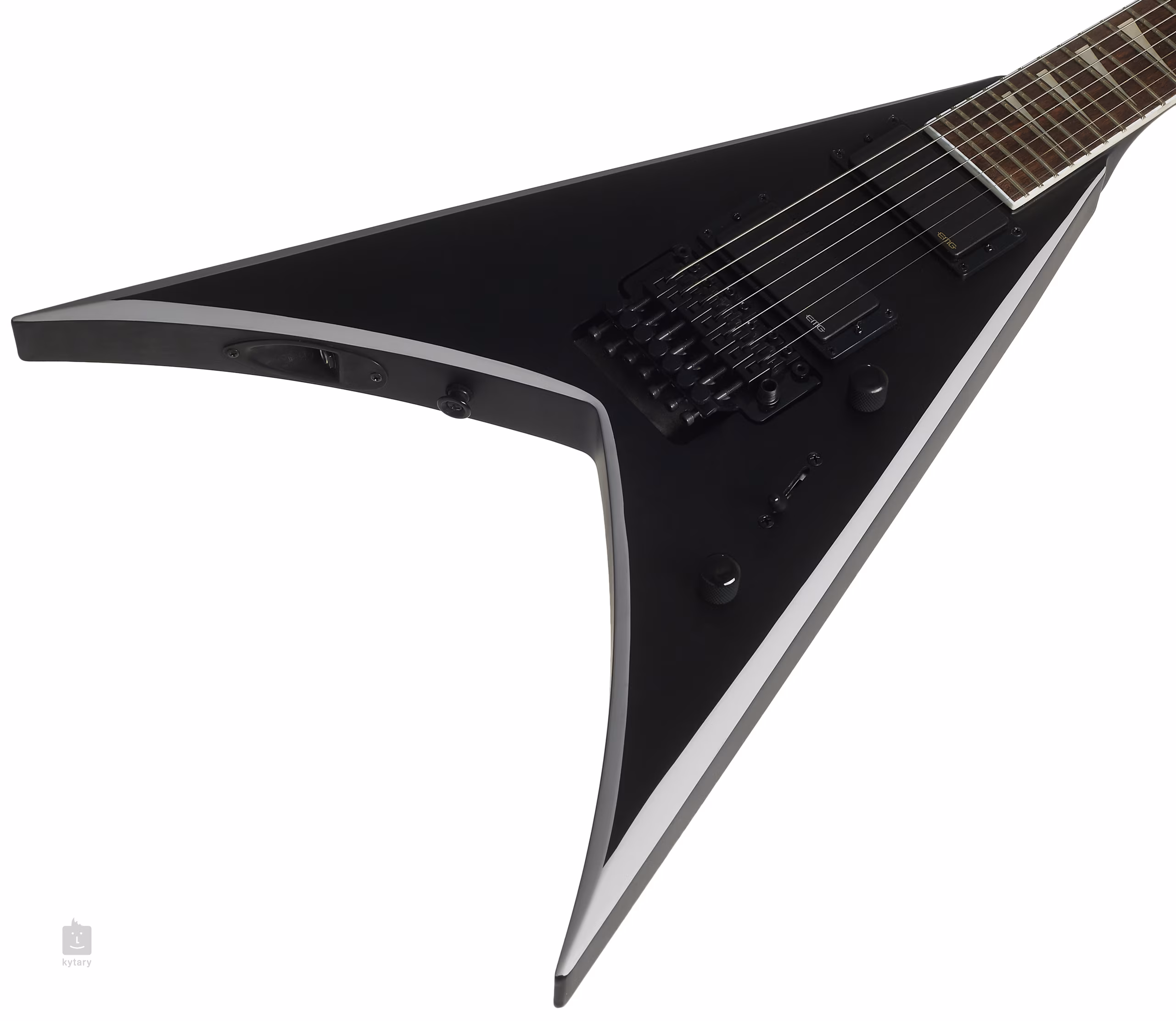 Dwa aktywne humbuckery EMG w najbardziej klasycznej kombinacji 81/85 zapewniają brzmieniu instrumentu niezbędną pełnię i precyzyjną artykulację dla śpiewnych solówek lub łamania akordów, a także gęstość i agresywność dla ultraszybkich gitarowych shredów i ostro cyzelowanych riffów rockowych i metalowych. Potencjometry głośności, regulacja barwy dźwięku oraz trójpozycyjny przełącznik pickupów służą do regulacji brzmienia. Struny umieszczone są w firmowych maszynkach do strojenia die-cast oraz tremolo Floyd Rose z podwójnym rewersem, które możesz wykorzystać do dodania imponujących efektów dźwiękowych do swojej gry. Ładne wykonanie podkreślają szare wykończenia na ściętych krawędziach korpusu oraz czarne okucia.