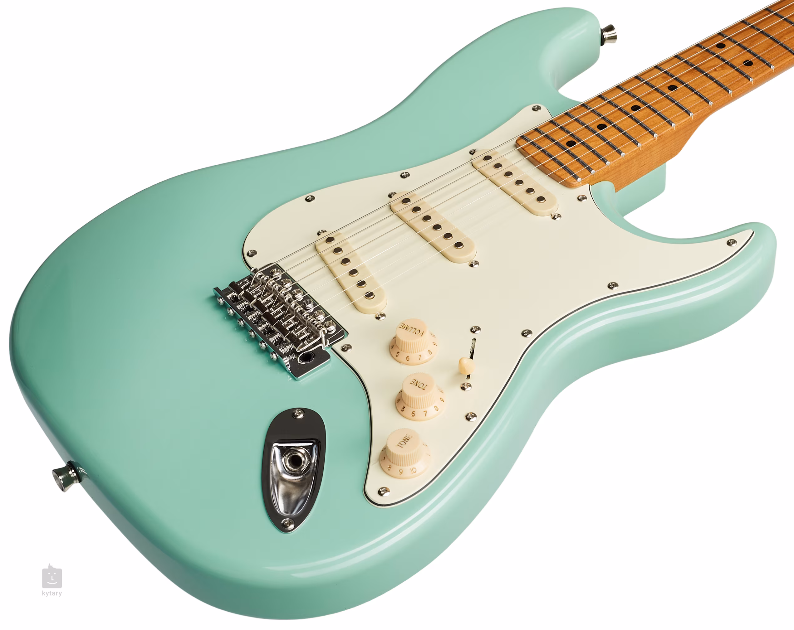 Trzy przetworniki single-coil dają gitarze tradycyjne odczucia i siłę uderzenia modeli ST. Charakter brzmienia można kształtować za pomocą potencjometru głośności, dwóch potencjometrów barwy oraz pięciopozycyjnego przełącznika pickupów. Struny zakotwiczone są na kościanej podstrunnicy z chromowanymi tuningami i zsynchronizowanym tremolo. Stylowy wygląd gitary podkreśla biały pickguard.
