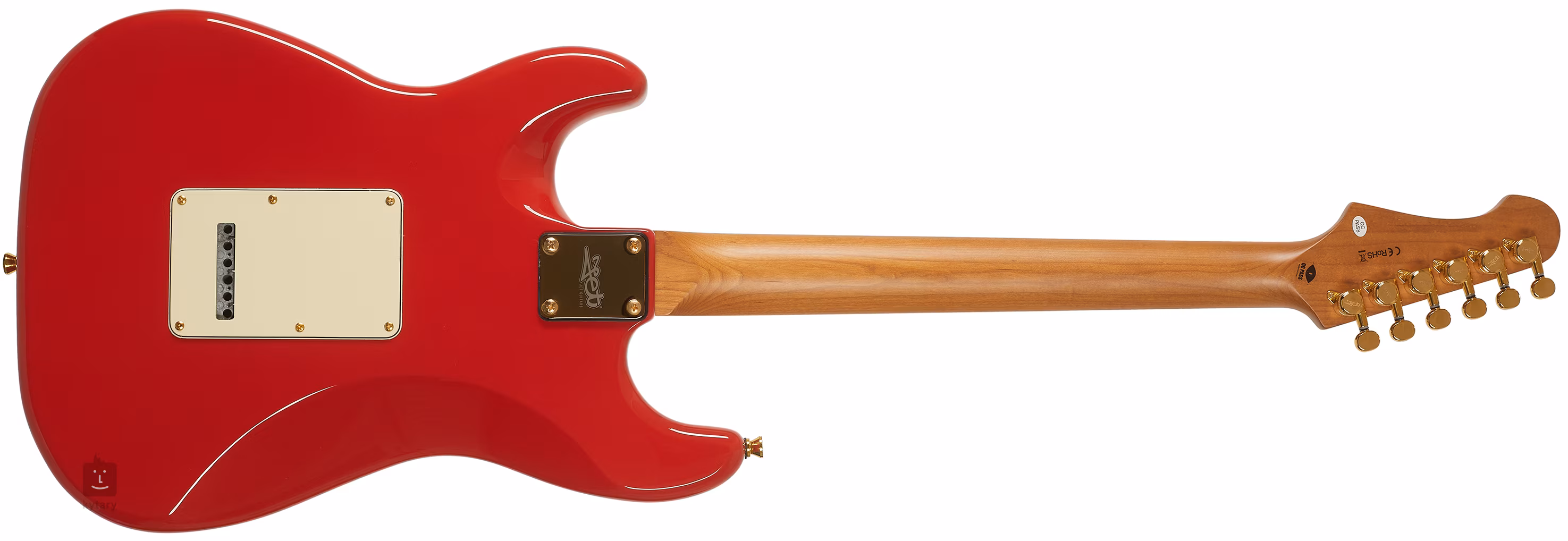 Gitary elektryczne JET JS-380 stanowią rozszerzenie serii 300. Nadal są to niedrogie instrumenty o designie i tradycyjnych elementach modeli double-cut ST. Korpus gitary elektrycznej JS-380 RD G jest wykonany z pieczonego topoli (roasted poplar). Do przykręcanej szyjki z klonu kanadyjskiego przyklejono palisandrowy gryf z dwudziestoma progami. Przed montażem szyjka została poddana obróbce cieplnej, dzięki czemu drewno jest bardziej stabilne, a jednocześnie zyskuje wygląd/aurę szyjek/gryfów używanych od lat. Trzy przetworniki single-coil zapewniają gitarze tradycyjny charakter i moc modeli ST. Charakter brzmienia można kształtować za pomocą potencjometru głośności, dwóch tonowych filtrów i pięciopozycyjnego przełącznika przetworników. Struny są zamocowane przez zerowy próg z kości w zamykanych mechanizmach strojących i zsynchronizowanym tremolo. Stylowy wygląd gitary podkreśla jasny pickguard i złote okucia. Stosunkowo nowa marka Jet Guitars oferuje niedrogie gitary elektryczne w tradycyjnych wzorach, kolorach i wykończeniach.