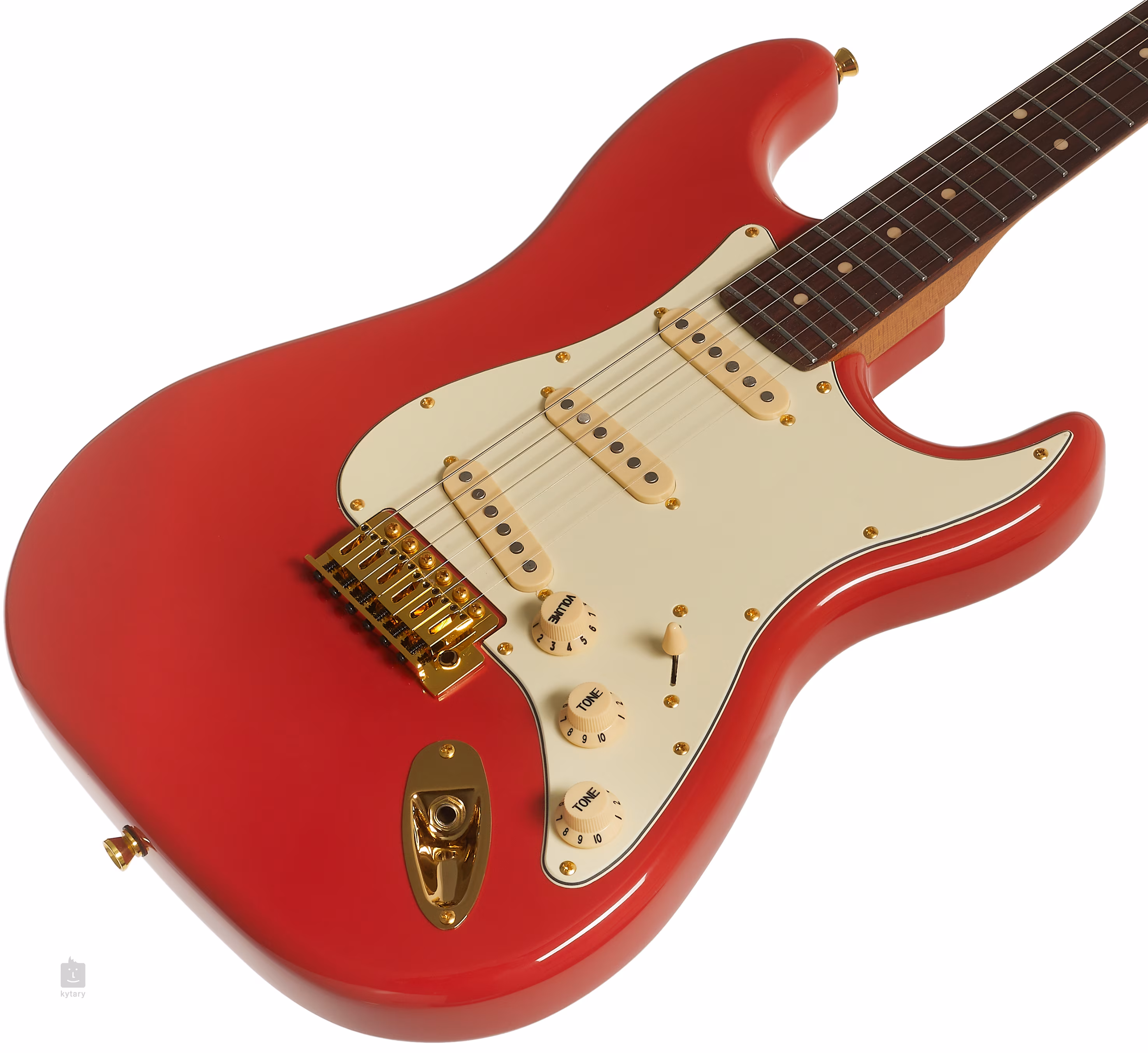 Trzy przetworniki typu single-coil nadają gitarze tradycyjny charakter i uderzenie modeli ST. Charakter brzmienia można kształtować za pomocą potencjometru głośności, dwóch regulatorów tonów i pięciopozycyjnego przełącznika przetworników. Struny są zakotwiczone na kościanej podstrunnicy z blokowanymi maszynkami do strojenia i zsynchronizowanym tremolo. Stylowy wygląd gitary podkreśla jasny pickguard i złoty osprzęt.