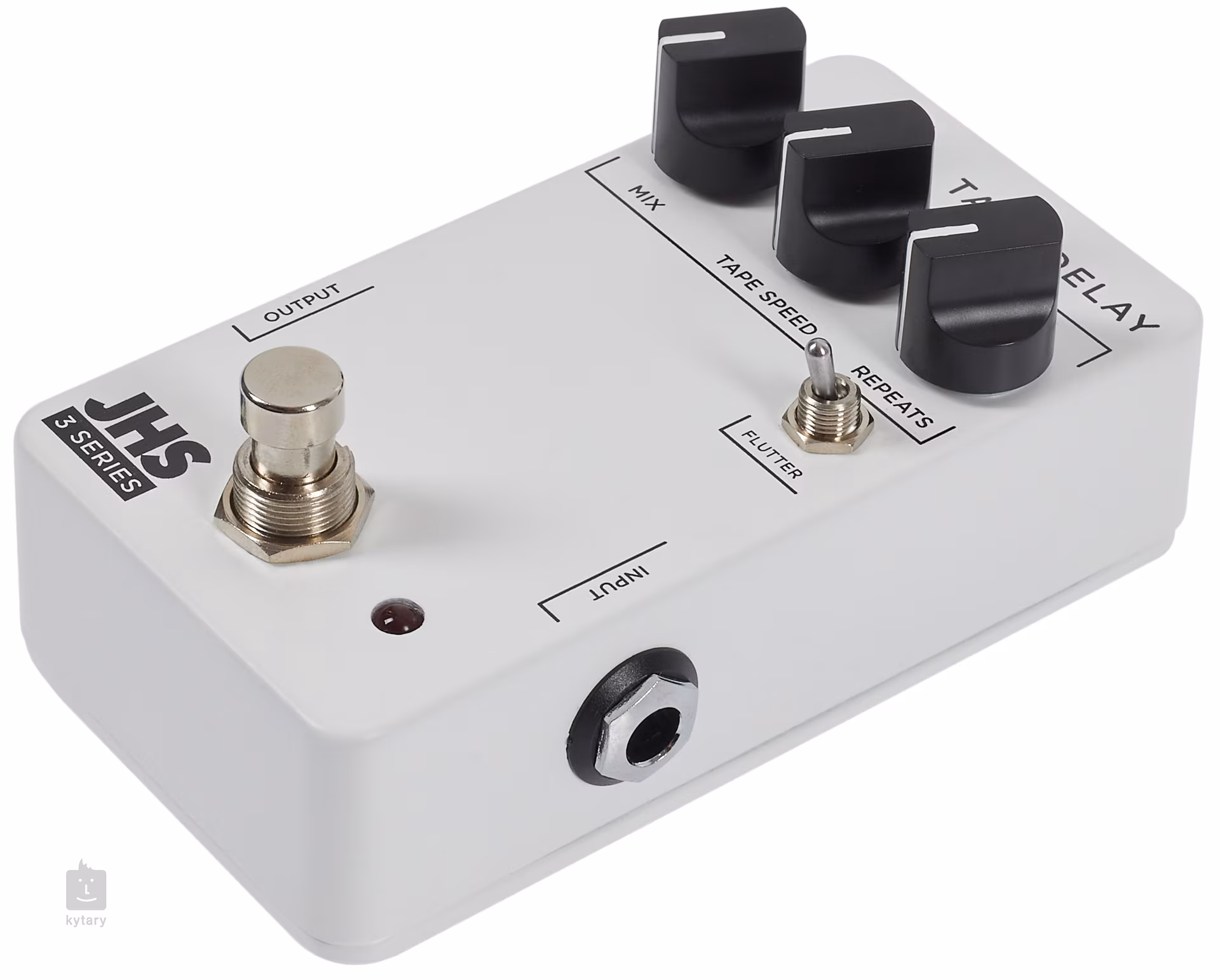 Pedał JHS Pedals3 Series Tape Del ay bazuje na brzmieniu pierwszego efektu delay, wynalezionego przez Les Paula w latach 40-tych XX wieku poprzez połączenie dwóch magnetofonów. Wynalazek ten doprowadził później do powstania efektów Echosonic i Echoplex EP-1, na których oparty jest Tape Delay firmy JHS. Rezultatem jest pięknie brzmiący vintage delay, który może być używany w rocku, bluesie lub muzyce alternatywnej.