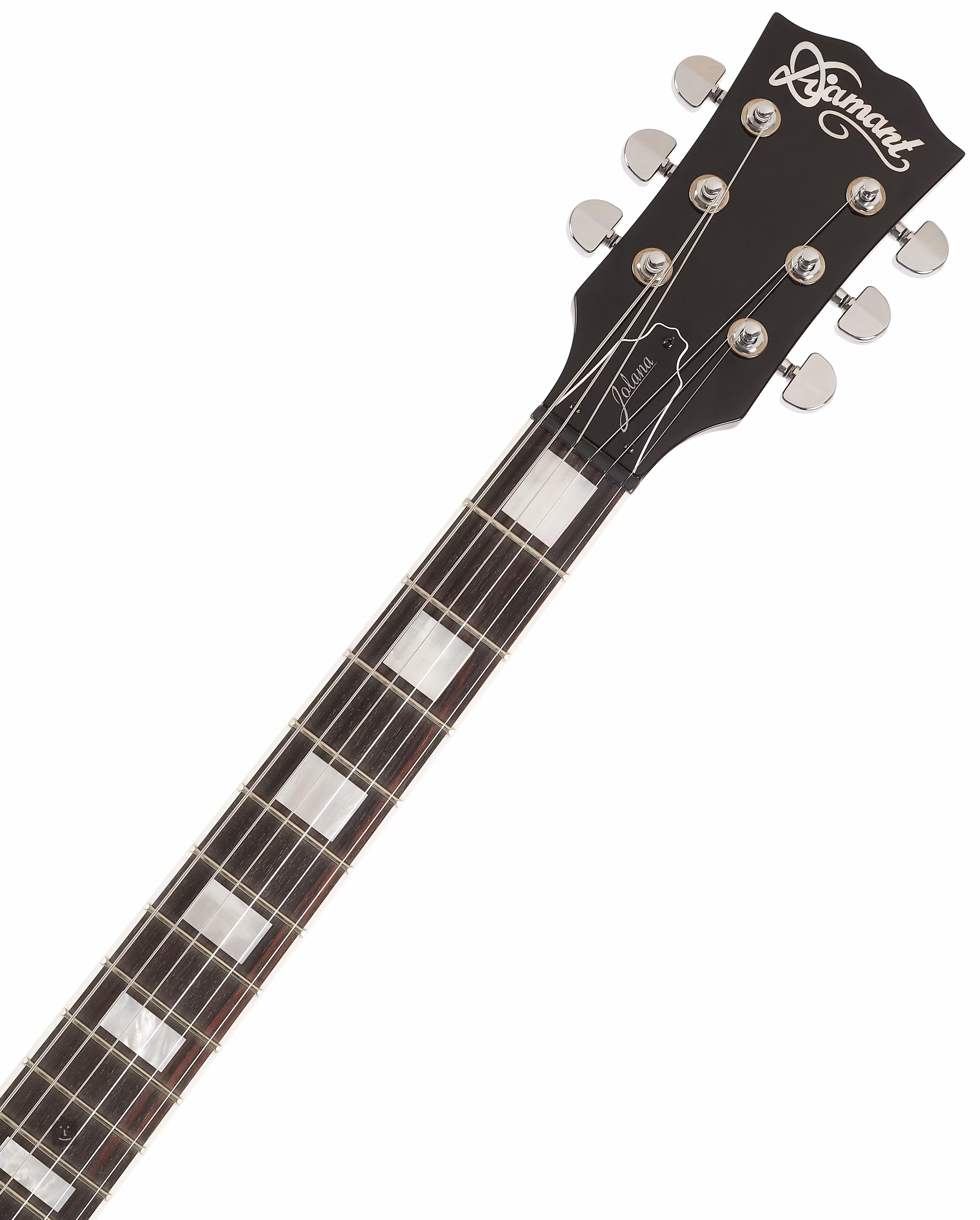 Mahoniowy korpus gitary elektrycznej Diamant II SD CH RW BTG ozdobiony jest topem z klonu płomienistego i wykończony lakierem Black Stain Gloss. Palisandrowa podstrunnica z dwudziestoma dwoma progami Medium Jumbo jest przyklejona do klonowej szyjki. Orientację podstrunnicy ułatwiają bloki pozycjonujące.