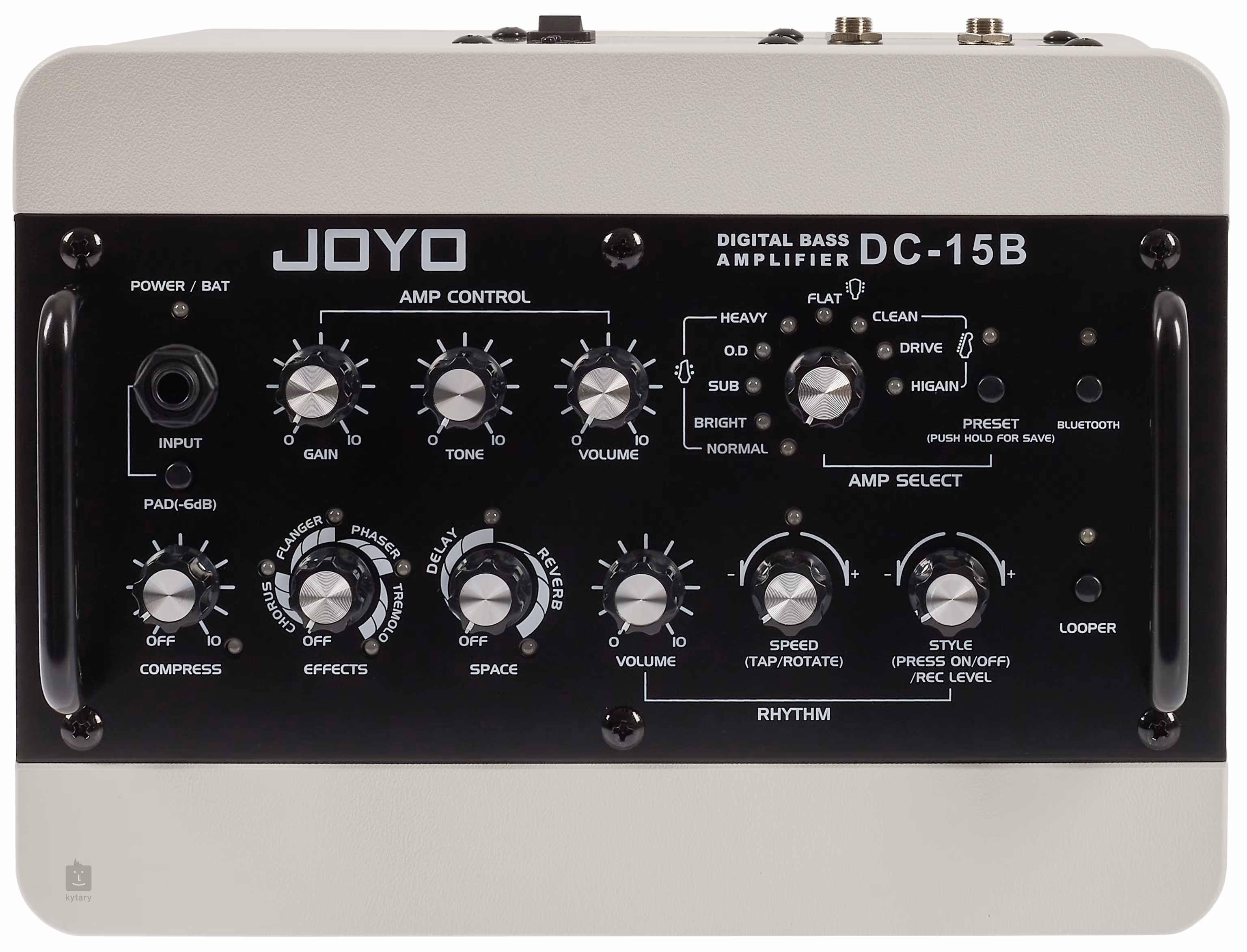 Wbudowane efekty, takie jak chorus, flanger, tremolo, phaser, delay i reverb dodają głębi i dynamiki brzmieniu. Funkcja kompresji zapewnia dokładną dynamikę i zrównoważone brzmienie. Te cechy sprawiają, że DC-15B nadaje się do eksperymentowania z różnymi gatunkami i stylami gry bez potrzeby stosowania dodatkowych efektów zewnętrznych.