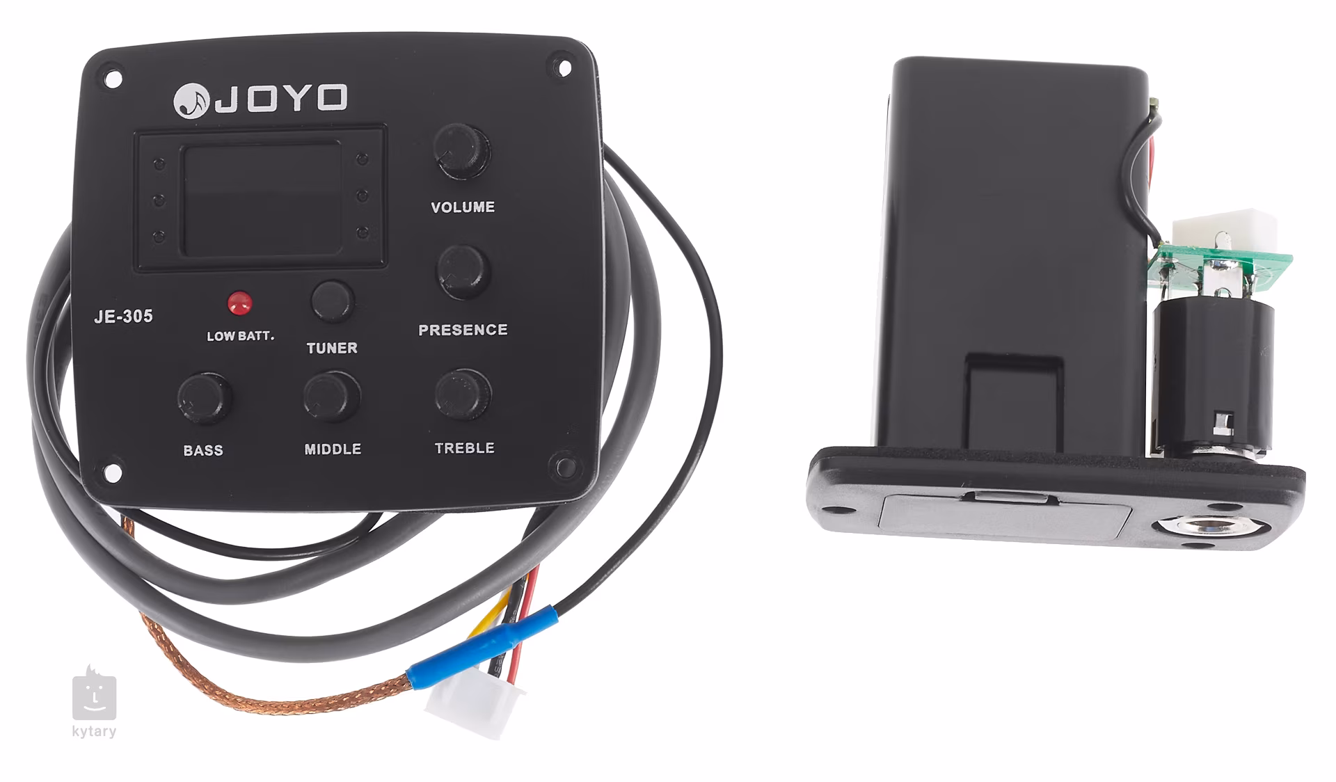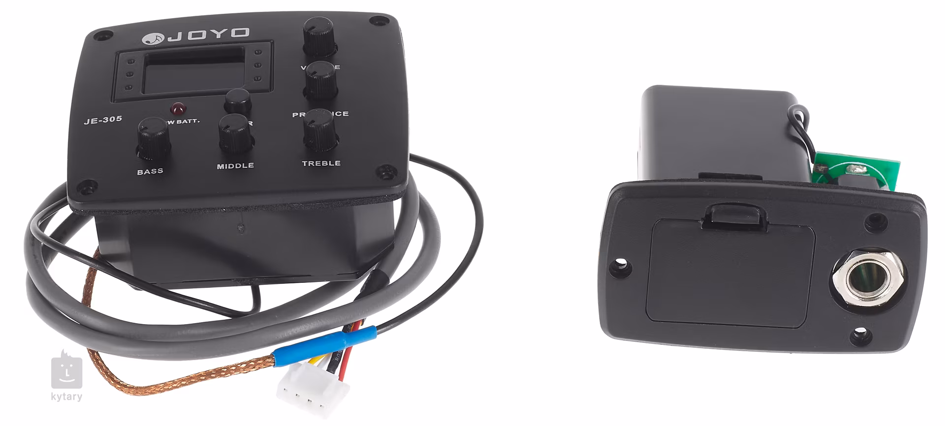 Aktywna elektronika Joyo JE-305 to idealny sposób na nagłośnienie gitary akustycznej. Zestaw zawiera przedwzmacniacz (przeznaczony do montażu z tyłu instrumentu) z czteropasmowym korektorem (Bass, Middle, Treble, Presence), regulacją głośności, zintegrowanym tunerem i kolorowym wyświetlaczem, gniazdem wyjściowym z nasadką/wejściem baterii (9V) oraz przetwornikiem piezoelektrycznym.
