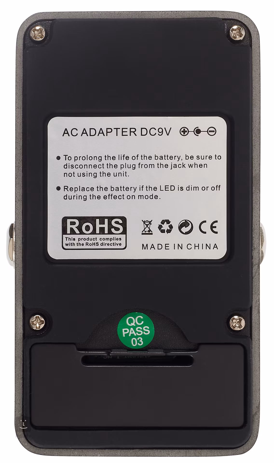 Cała elektronika efektu jest umieszczona w wytrzymałej metalowej obudowie. Pudełko jest podłączone jako prawdziwy bypass. Do zasilania wymagana jest bateria 9V lub adapter 9V (brak w zestawie).