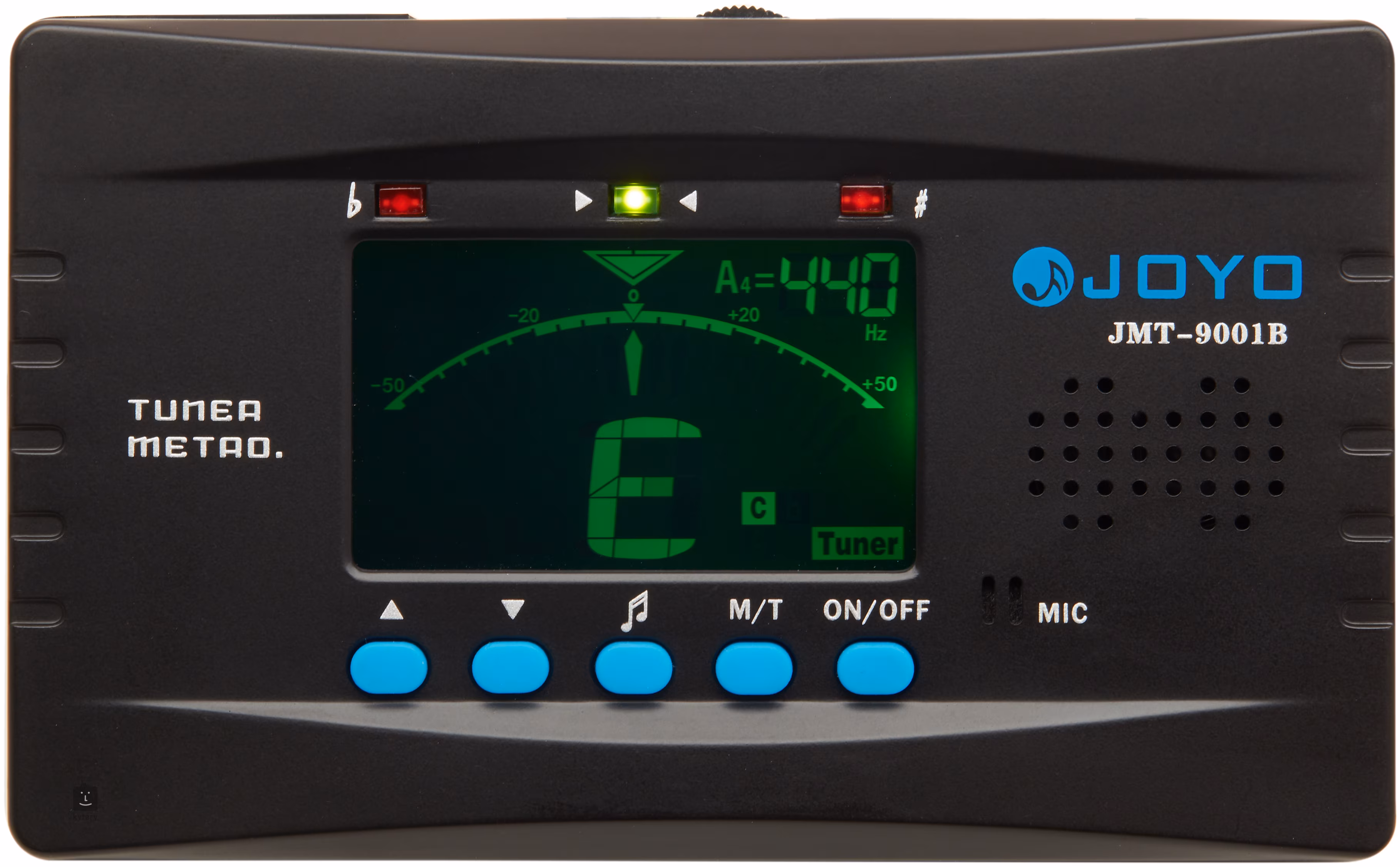 Uniwersalny tuner znanej firmy Joyo, za pomocą którego można w zabawny sposób nastroić dowolny instrument. Gitary elektryczne i basowe najłatwiej nastroić za pomocą połączenia kablowego, w przypadku innych instrumentów można użyć wbudowanego mikrofonu lub dołączonego mikrofonu kontaktowego, który jest szczególnie przydatny w przypadku instrumentów dętych i smyczkowych.