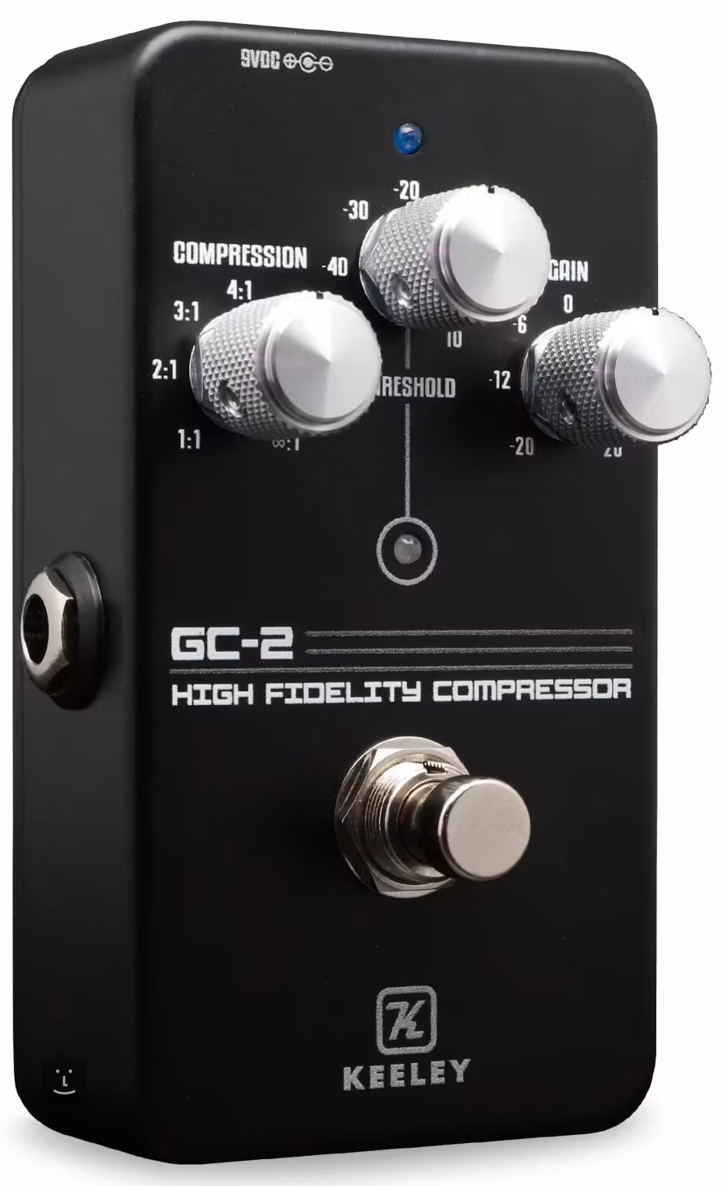 Efekt pedałowy GC-2 amerykańskiej marki Keeley to kompresor i limiter, który osiąga właściwości sprzętu studyjnego. Dzięki pasmu przenoszenia wynoszącemu ponad 20 KHz można go używać nie tylko z gitarą, ale także z klawiszami, automatem perkusyjnym itp. Z jego pomocą można dodać blasku i pięknego sustainu do brzmienia gitary lub innego instrumentu muzycznego, przy czym zawsze pozostaje ono przejrzyste bez niepożądanej gwałtownej kompresji, szumów lub innych zniekształceń. Wszystkie nuty, dekompozycje akordów lub flugelhorny zabrzmią w pełnej krasie z oddanymi nawet najdrobniejszymi szczegółami.