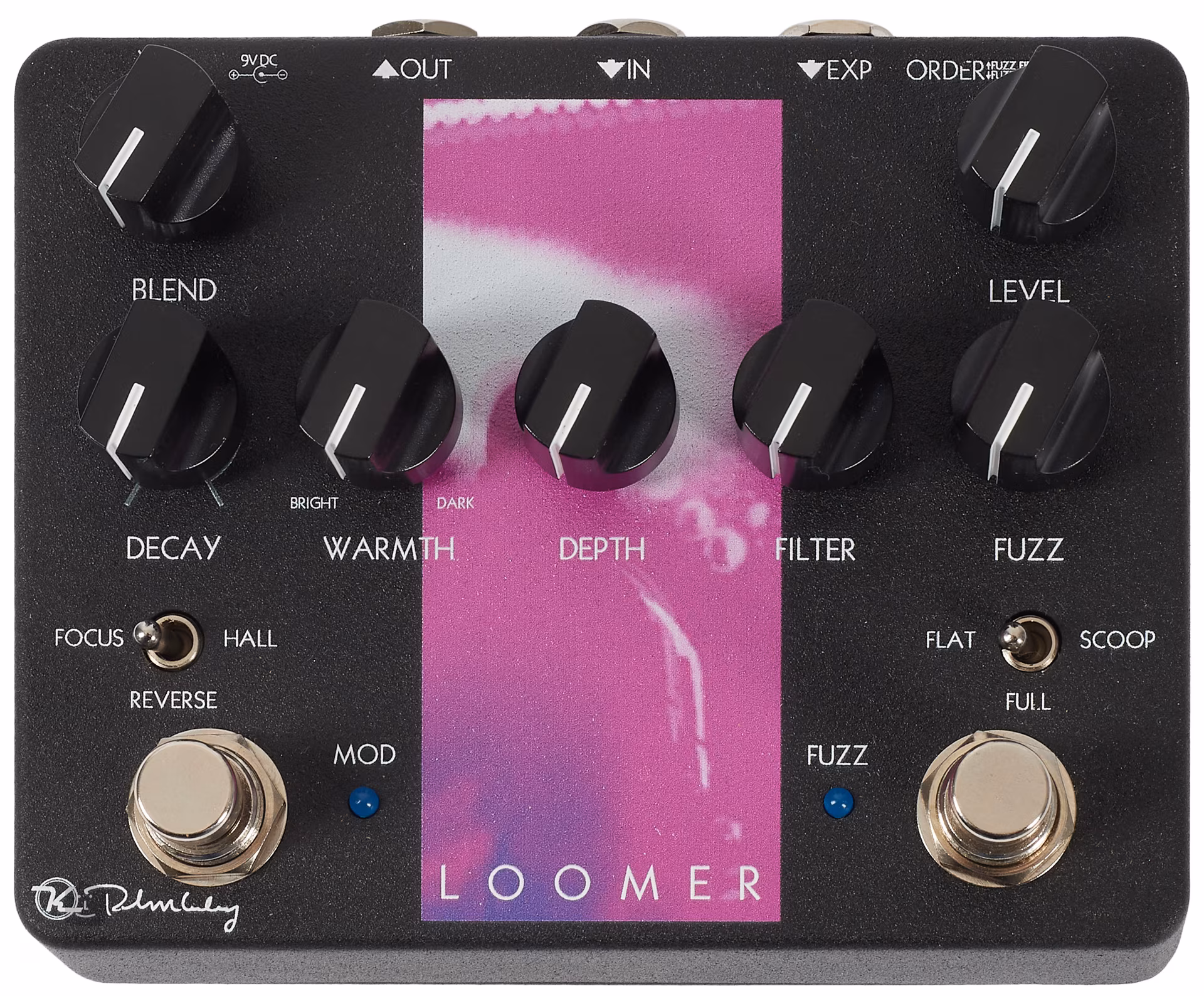 Loomer od amerykańskiej marki Keeley to wszechstronny dwukanałowy efekt gitarowy, który oferuje szeroką gamę luksusowych brzmień reverb/delay i klasycznych rockowych brzmień fuzz w jednym korpusie. Każdy kanał posiada trzy tryby brzmienia. W przypadku sekcji Fuzz są to tryby Flat, Full i Scoop, które (wraz z regulacją potencjometrów Fuzz i Filter) kształtują efekt fuzz do pożądanej formy. Drugi kanał oferuje trzy formy efektu pogłosu (Focus, Reverse, Hall). Użyj czterech potencjometrów, aby ustawić szeroką gamę imponujących dźwięków na pedale, wzbogacając trzy formy efektu pogłosu o efekt opóźnienia lub imponujący shimmer z chłodnym echem o charakterze klawiszy / strun. Drugi kanał bardziej niż broni się jako samodzielny efekt reverb/delay, ale Loomer jest efektem dwukanałowym, więc można używać brzmień fuzz i reverb jednocześnie, aby stworzyć naprawdę oryginalne dźwięki (plus określić ich kolejność w ścieżce sygnału).