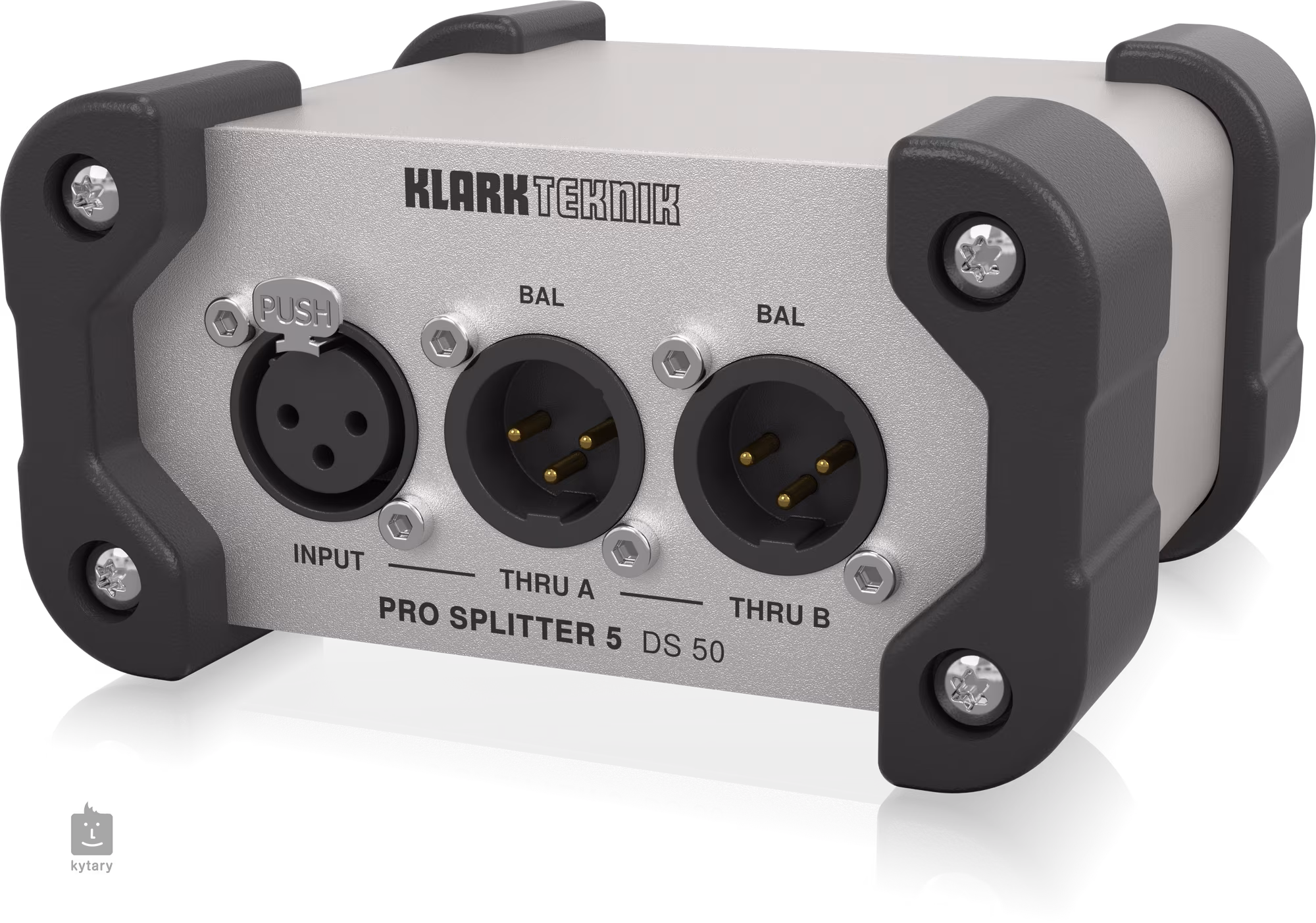 KLARK TEKNIK DS 50 to pasywny rozgałęźnik, który przesyła sygnał z jednego wejścia do pięciu wyjść. Posiada wysokiej jakości złącza Neutrik XLR, przełączane uziemienie i wytrzymałą aluminiową obudowę.