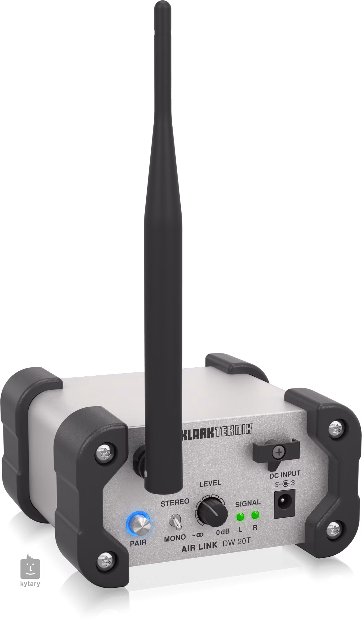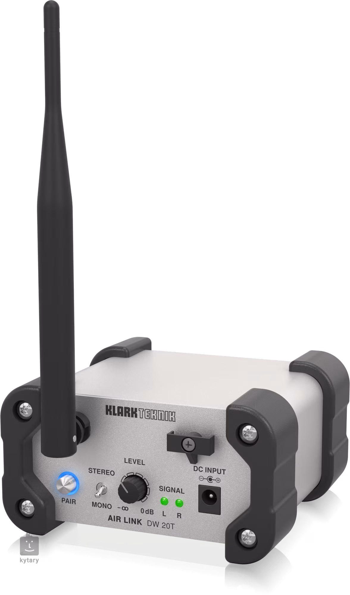 Klark Teknik DW 20T to bezprzewodowy nadajnik stereo, który w połączeniu z bezprzewodowym odbiornikiem DW 20R zapewnia wysokiej jakości strumień audio do dowolnego przenośnego systemu audio. Oferuje zewnętrzną antenę i zasięg do 30 metrów oraz dwa zbalansowane wejścia XLR i dwa niezbalansowane wejścia jack TRS 6,3 mm do połączenia z mikserami, wzmacniaczami i aktywnymi głośnikami. Do zasilania DW 20T należy użyć dołączonego adaptera.