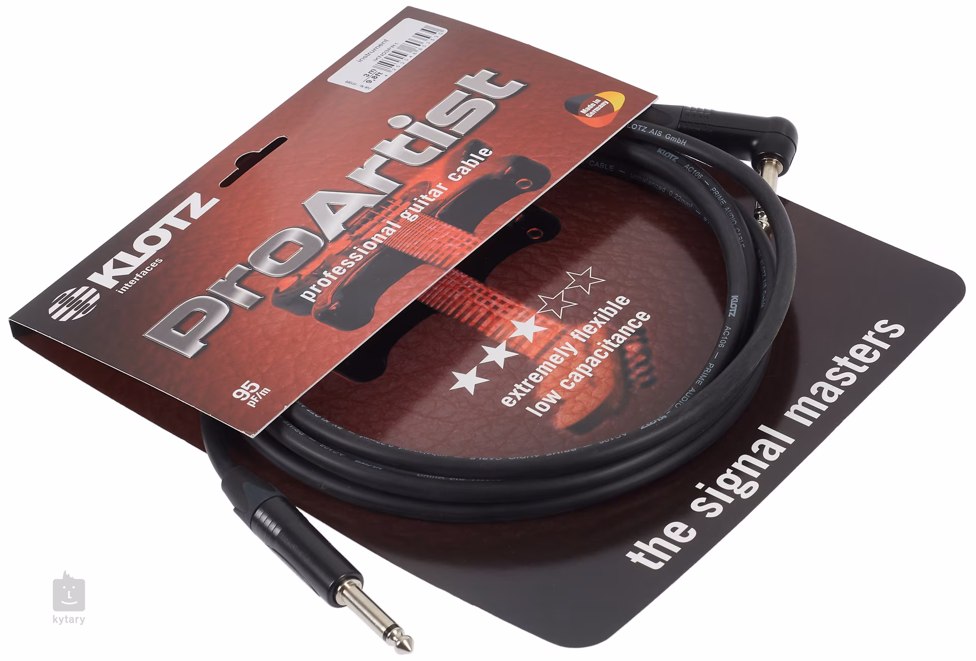 Kable instrumentalne Klotz z serii Pro Artist oferują połączenie wiernej transmisji sygnału, wysokiej elastyczności i trwałości. Wysokiej jakości miedziany rdzeń zapewnia ciepłe, bogate brzmienie z minimalną kompresją, a niska pojemność 95 pF/m zapewnia szybką reakcję i zrównoważone częstotliwościowo brzmienie. Kabel można wykorzystać do podłączenia gitary, basu lub innego instrumentu monofonicznego. Ten model ma jedno proste i jedno zakrzywione złącze. Jego długość wynosi 3 metry.
