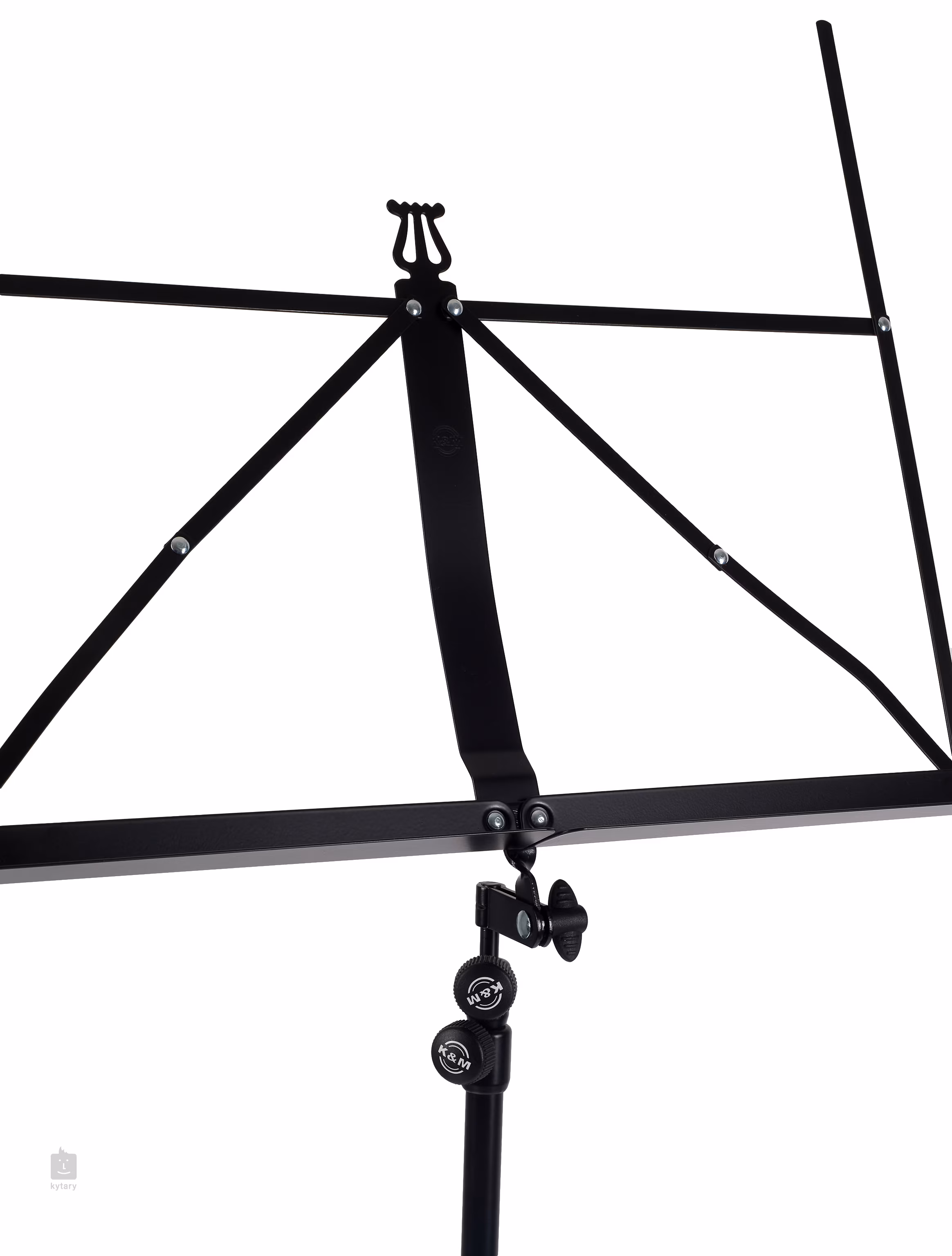 Stojak na nuty K&M 101 wykonany jest ze stali. Jest to składany statyw muzyczny o tradycyjnej konstrukcji z trójnożną podstawą i trzyczęściową stalową poprzeczką, która umożliwia regulację wysokości statywu w zakresie od 650 do 1225 mm. Dzięki niewielkiej wadze i kompaktowości (tylko 390 mm długości po złożeniu), statyw z łatwością mieści się w torbie, plecaku lub saszetce i można go mieć zawsze pod ręką.