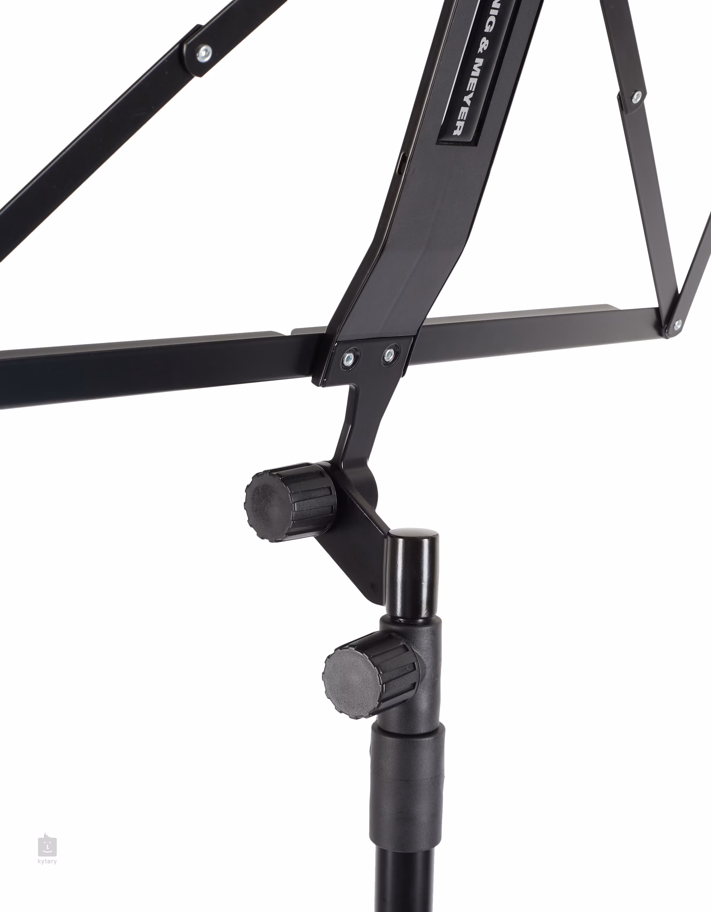 Solidny stalowy statyw na nuty z szerokim składanym pulpitem na nuty, trzyczęściowa składana konstrukcja z podstawą na trójnogu i regulowaną wysokością od 720 do 1520 mm. Po złożeniu praktycznie nie zajmuje miejsca - idealny wybór dla wyższych muzyków grających na stojąco.