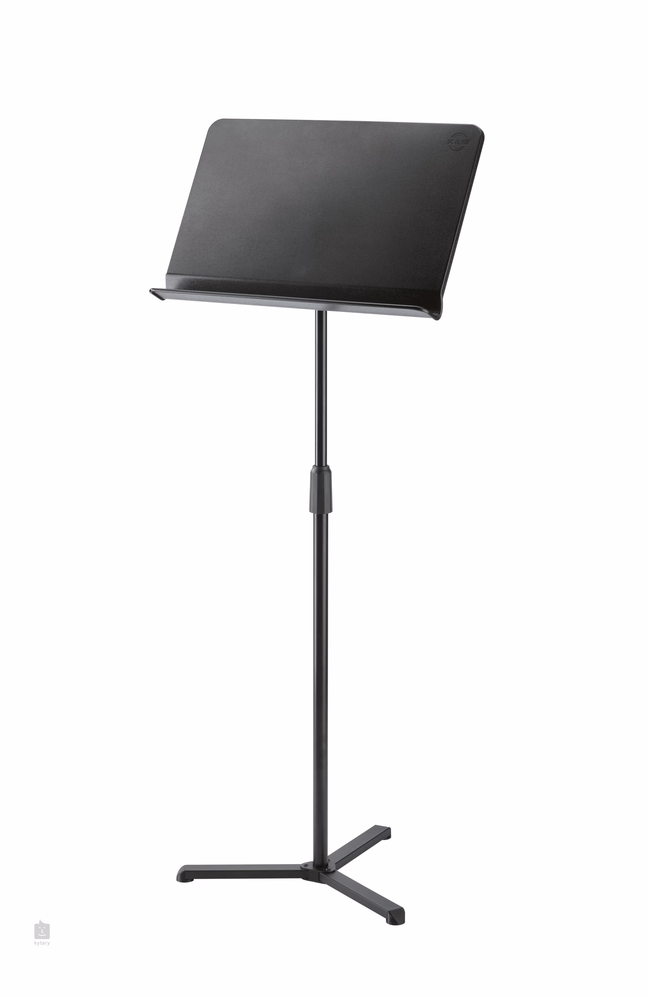 Orkiestrowy statyw muzyczny K&M 11927 oferuje niemal nieskończoną ilość regulacji wysokości w zakresie od 653 mm do 1185 mm (mocowanie z blokadą cierną). Wraz z wysokością, można również regulować nachylenie statywu muzycznego. Stojak na nuty składa się z lekkiego stojaka z tworzywa sztucznego o wymiarach 500 x 320 mm oraz stalowego stojaka ze stałą podstawą w postaci statywu.