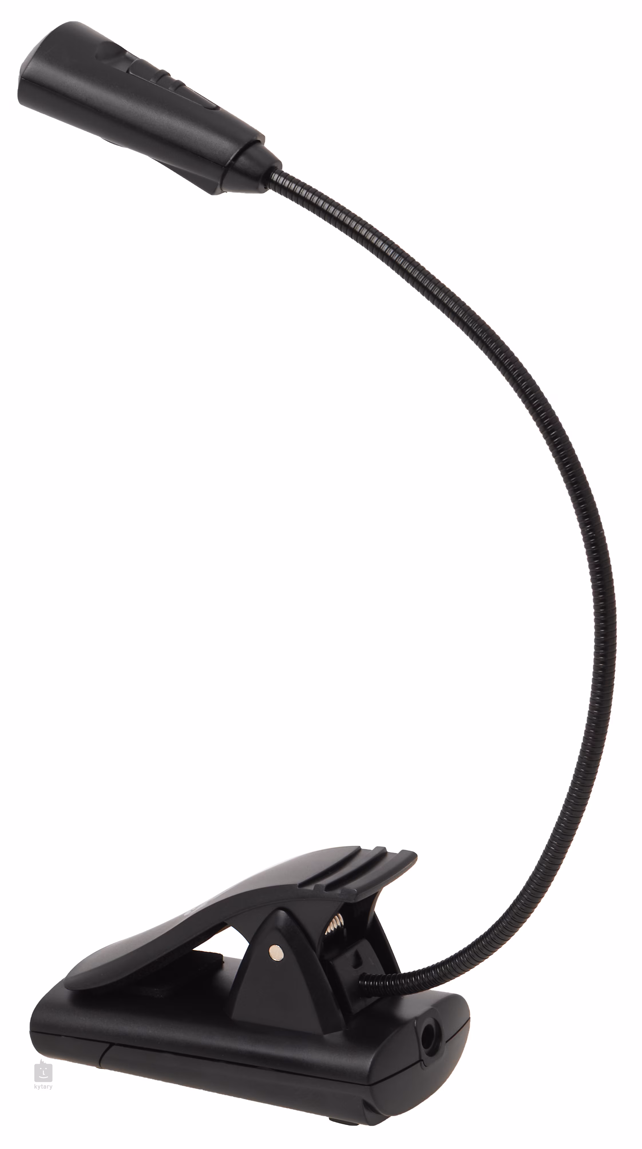 Uniwersalna lampa z dwoma jasnymi diodami LED do statywów muzycznych i instrumentów dętych o żywotności około 100.000 godzin. Elastyczność regulacji zapewnia gęsia szyja i bardzo szeroki klips o rozstawie 25 mm. Lampa może również stać samodzielnie. Zasilanie odbywa się za pomocą trzech baterii AAA (ok. 20 godzin pracy) lub zasilacza sieciowego (brak w zestawie).