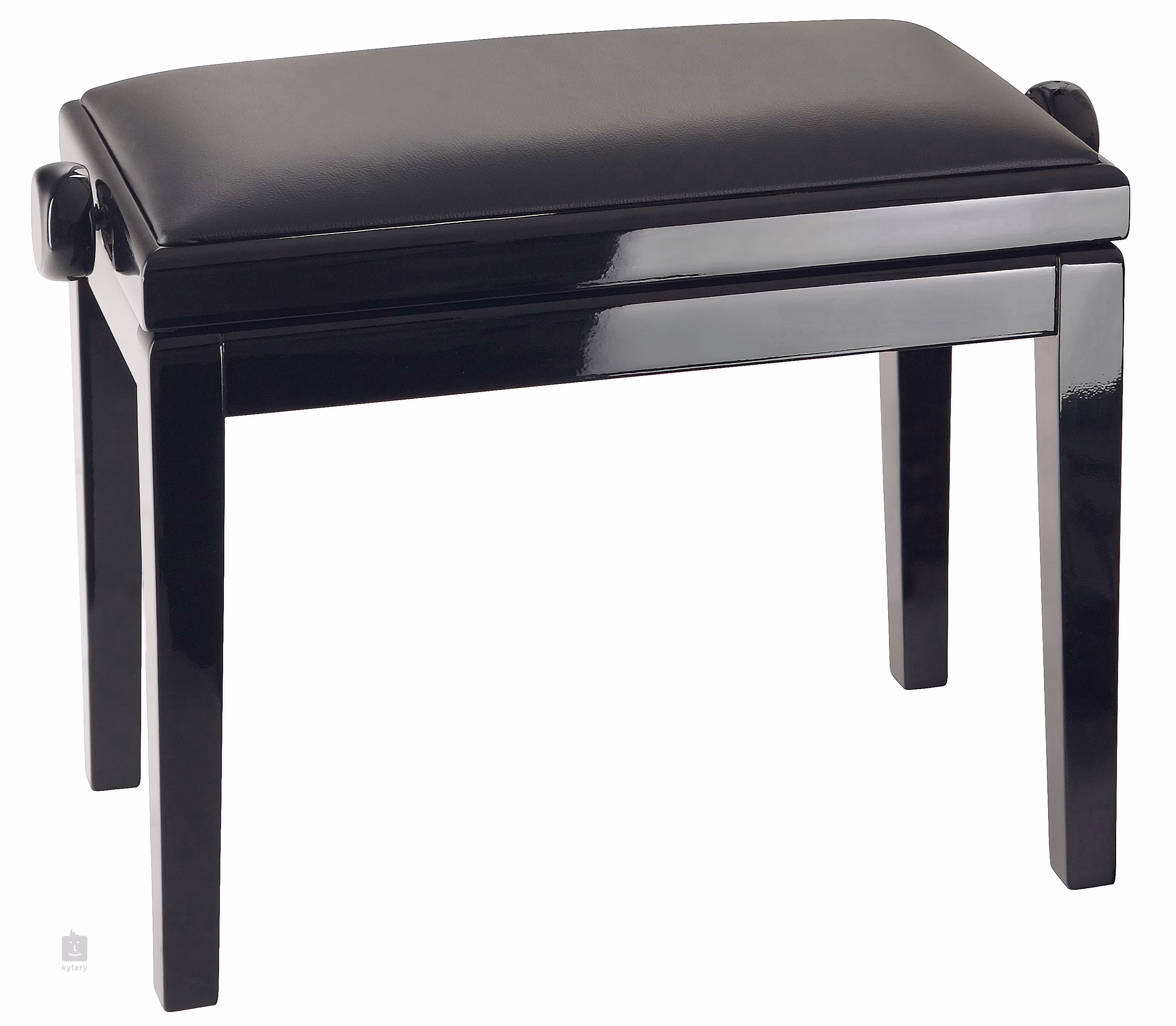 Stołek do fortepianu o klasycznym wyglądzie, z łatwą regulacją wysokości i wygodnym siedziskiem pokrytym skórą. Siedziska są dostępne w wykończeniu błyszczącym i matowym oraz w kilku kolorach pasujących do najbardziej popularnych kolorów fortepianów i pianin.