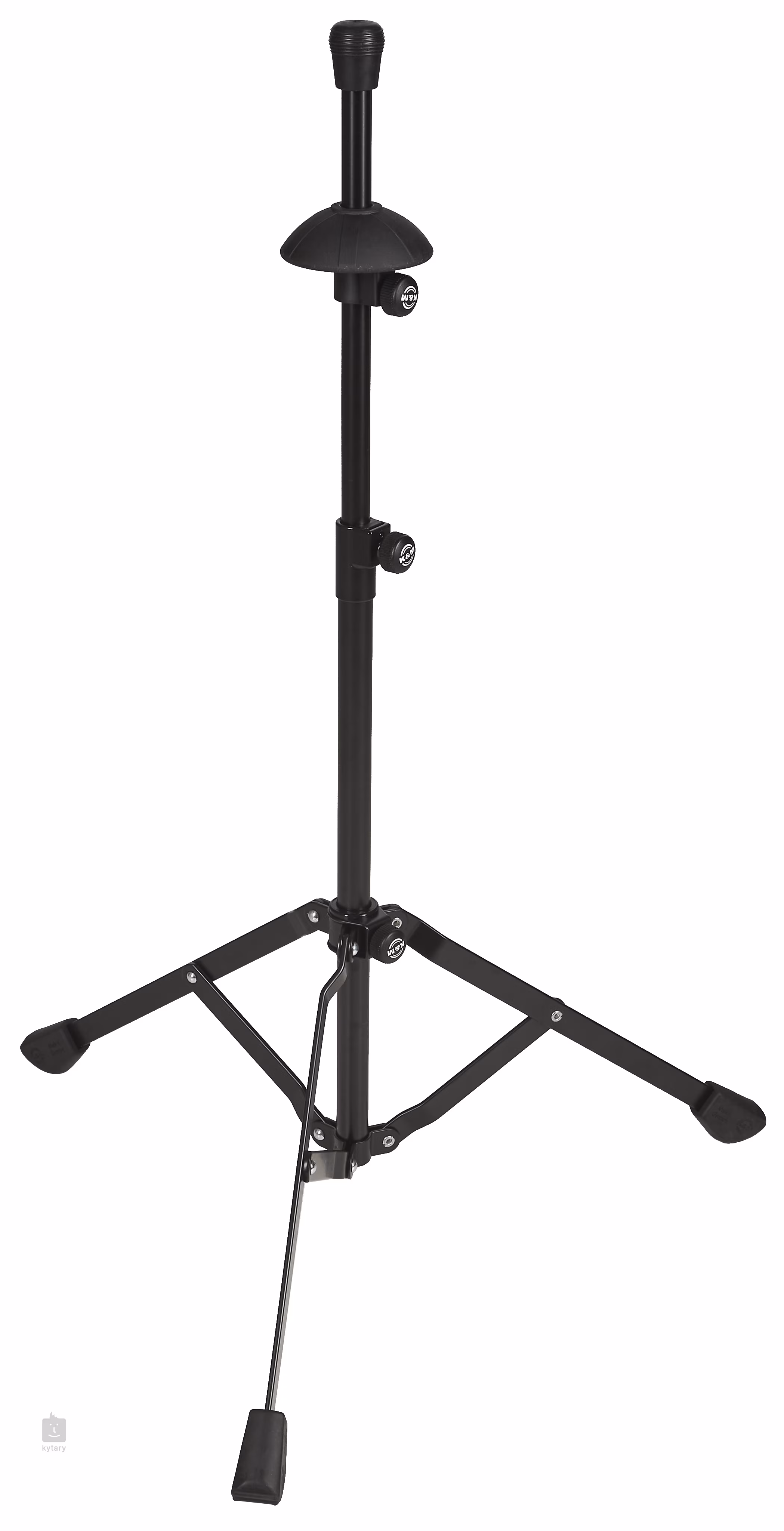 Kompaktowy stalowy statyw do puzonu, który łatwo się składa dzięki wzmocnionej konstrukcji podstawy. Wysokość stojaka może być regulowana (555 do 865 mm). Części stykające się z instrumentem są wykonane z gumowanego materiału, aby zapobiec uszkodzeniu puzonu.