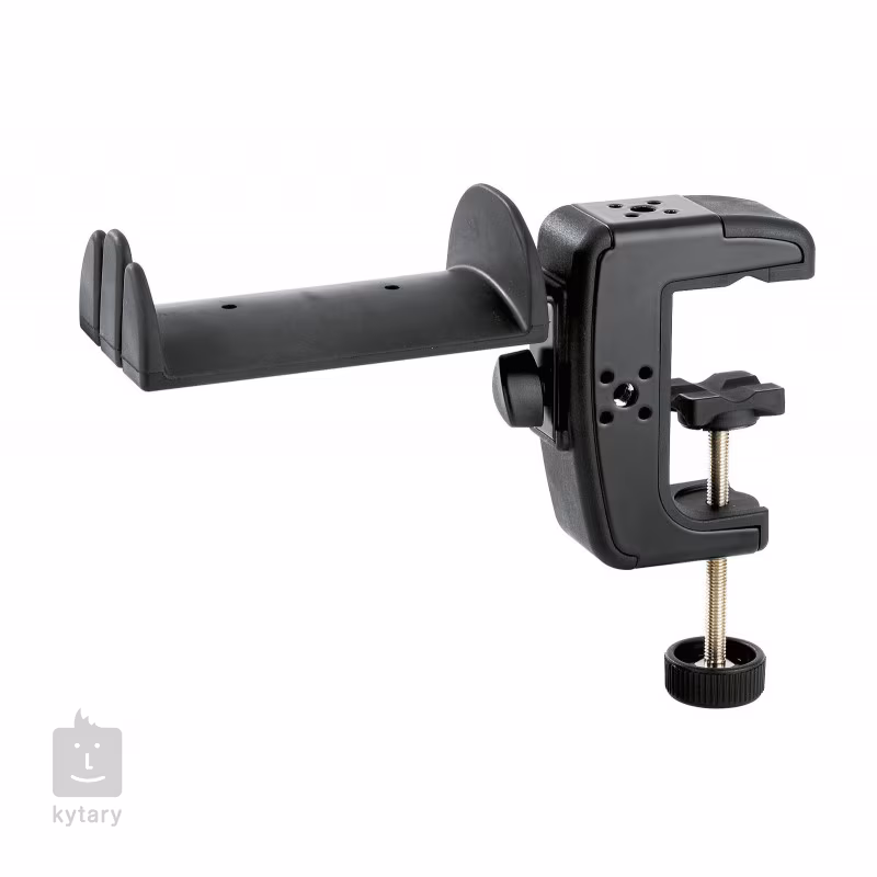 Praktyczny uchwyt na słuchawki wykonany jest z solidnej stali i oferuje maksymalny komfort dla Twoich słuchawek, które są integralną częścią wyposażenia każdego profesjonalnego i domowego studia nagrań. Uchwyt mocuje się do stołu lub stojaka o grubości do 48 mm za pomocą solidnej śruby, przestrzeń o wymiarach 100 x 60 mm mieści do dwóch słuchawek studyjnych, a przednia strona ma wycięcia na parę słuchawek dousznych. Uchwyt można obracać o 90 stopni, dzięki czemu można go zamontować w pozycji pionowej lub poziomej. Uchwyt może być również używany jako uchwyt na kable mikrofonowe i instrumentalne.