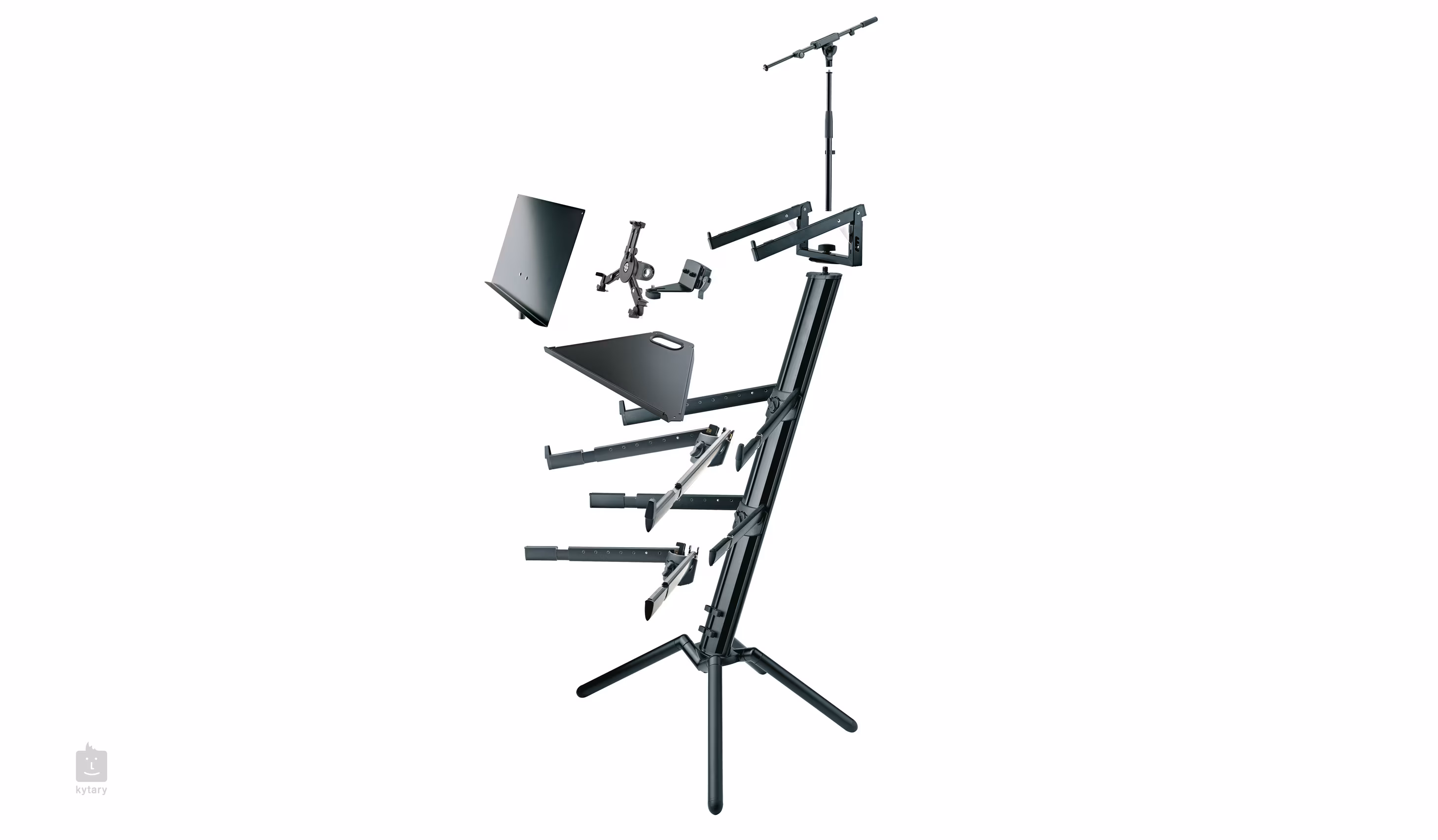 Flagowy model podstawek pod klawiaturę Spider Pro firmy K&M, nowoczesny i unikalny wygląd wzbogacony o świetne funkcje użytkowe. Lekka aluminiowa konstrukcja pozwala na łatwy transport pomiędzy produkcjami. Stojak posiada dwie pary ramion do ustawiania klawiszy, nośność każdej z kondygnacji wynosi 35 kg, a górna kondygnacja pozwala na zmianę nachylenia klawiszy do 15° dla najbardziej komfortowej gry. Maksymalną stabilność stojaka zapewnia statyw, który umieszczony jest na wysokości, pozostawiając dużo miejsca na pedały klawiatury. Do górnej części statywu można przymocować gwint 3/8" lub 5/8" do uchwytu mikrofonowego. Spider Pro to wszechstronny stojak nadający się do gry na stojąco lub na siedząco, dostępny w trzech kolorach, więc doskonale uzupełni wystrój Twojej klawiatury. Stojak zawiera uchwyty na kable oraz gwint na uchwyt mikrofonowy. Do stojaka można dołączyć nylonowe etui ochronne dla bezpieczniejszego transportu lub dodatkowe pary ramion, aby pomieścić dodatkowe klucze.