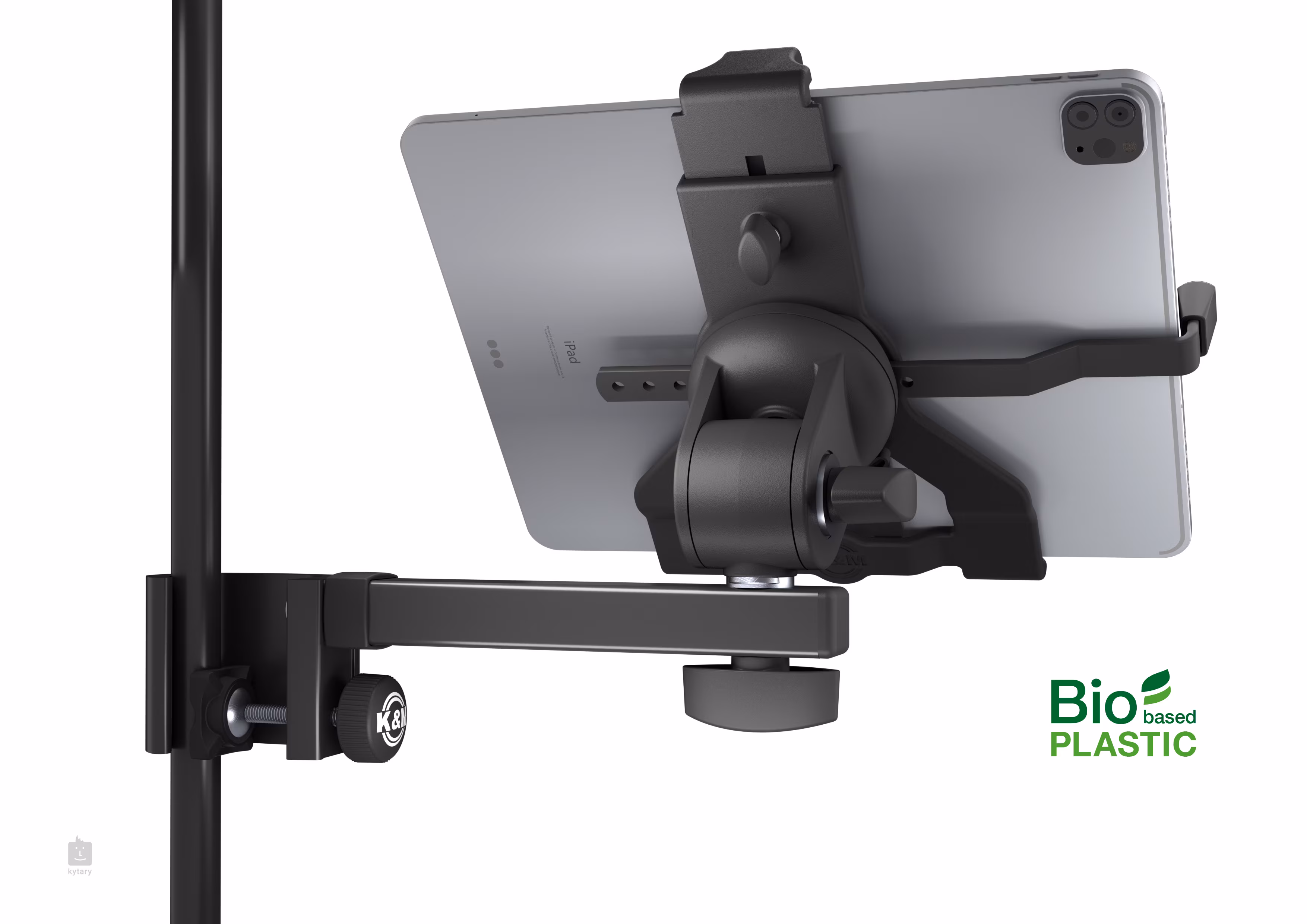 Uniwersalny uchwyt na tablet z praktycznym systemem blokady dla maksymalnego bezpieczeństwa Twojego urządzenia. Wykonany z połączenia plastiku pochodzącego z recyklingu i stali, uchwyt oferuje również doskonałe właściwości antywibracyjne, dzięki czemu można go używać nie tylko podczas sesji studyjnych, ale również podczas głośnych występów na żywo. Uchwyt jest odpowiedni dla tabletów o rozmiarach od 10 do 16 cali i może być przymocowany do tyczki statywu mikrofonowego o średnicy do 30 mm. Uchwyt posiada również regulowaną wysokość w zakresie 158 - 280 mm i regulowaną szerokość w zakresie 150 - 330 mm.