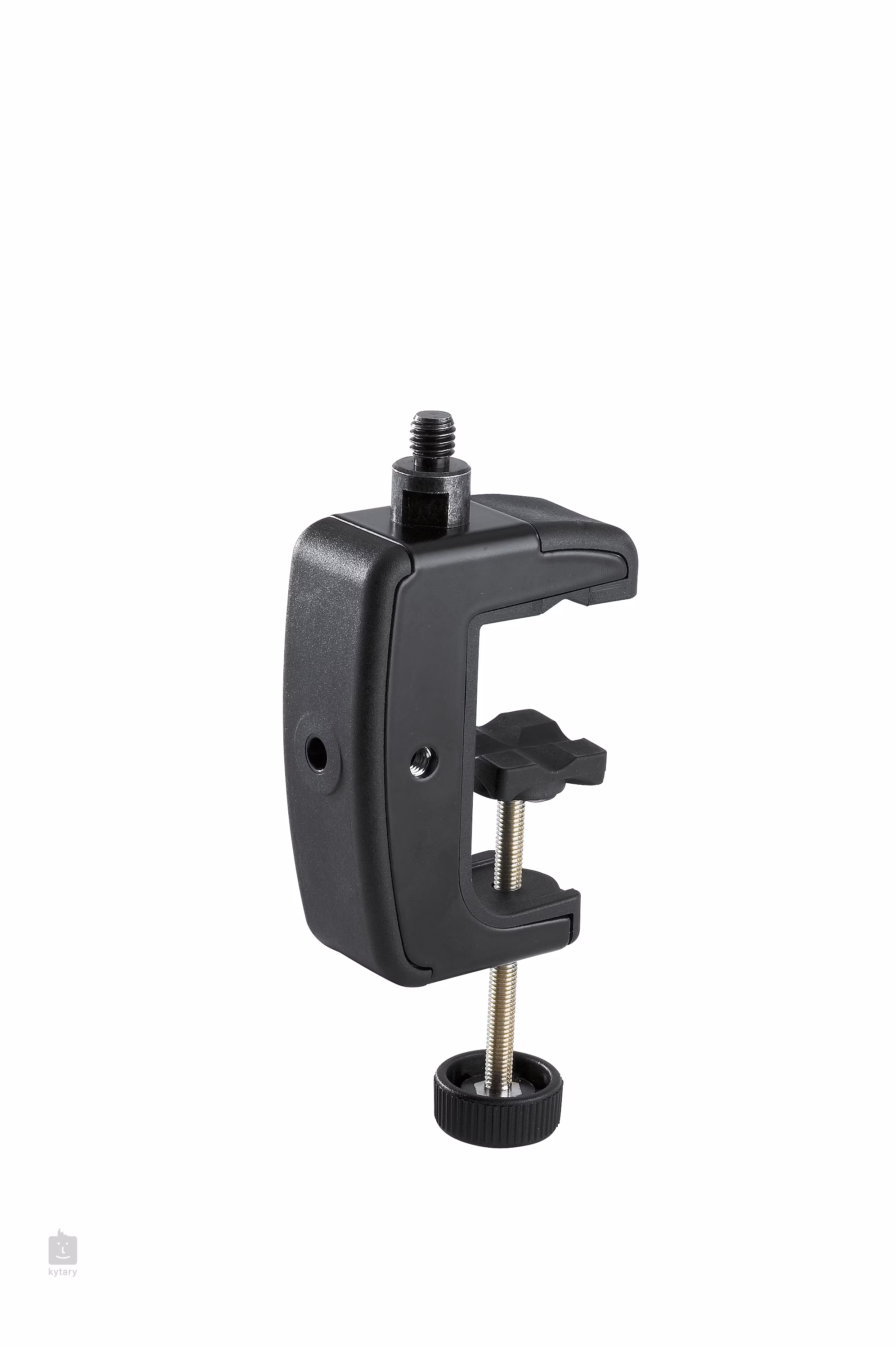 Uniwersalny uchwyt do mikrofonu biurkowego nadający się do zamocowania uchwytu mikrofonowego lub gęsiej szyjki. Wykonany jest z wytrzymałej stali i posiada gwint o długości 48 mm. Zintegrowany gwint może pomieścić urządzenia z gwintem 1/4", 3/8" lub 5/8".