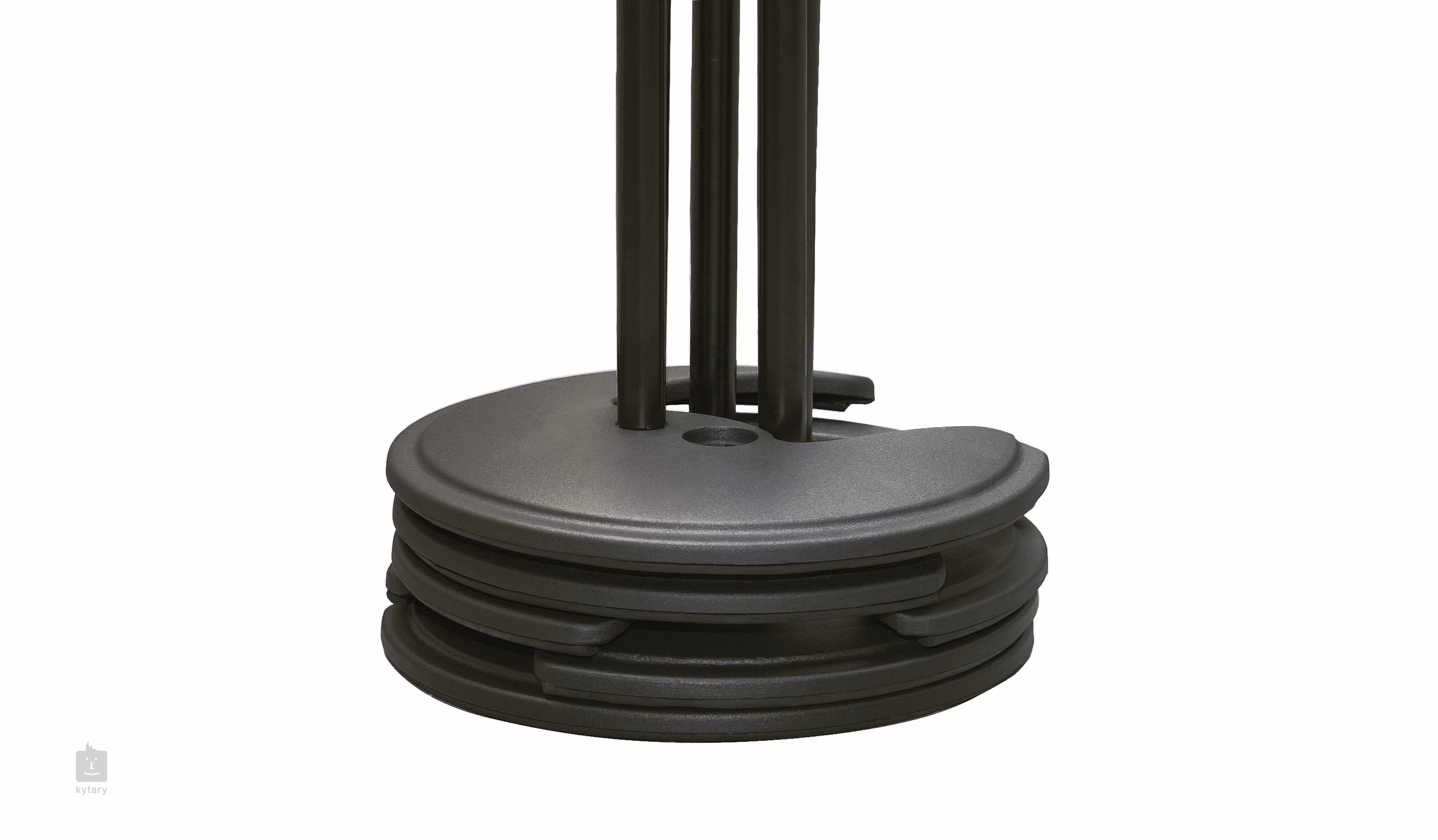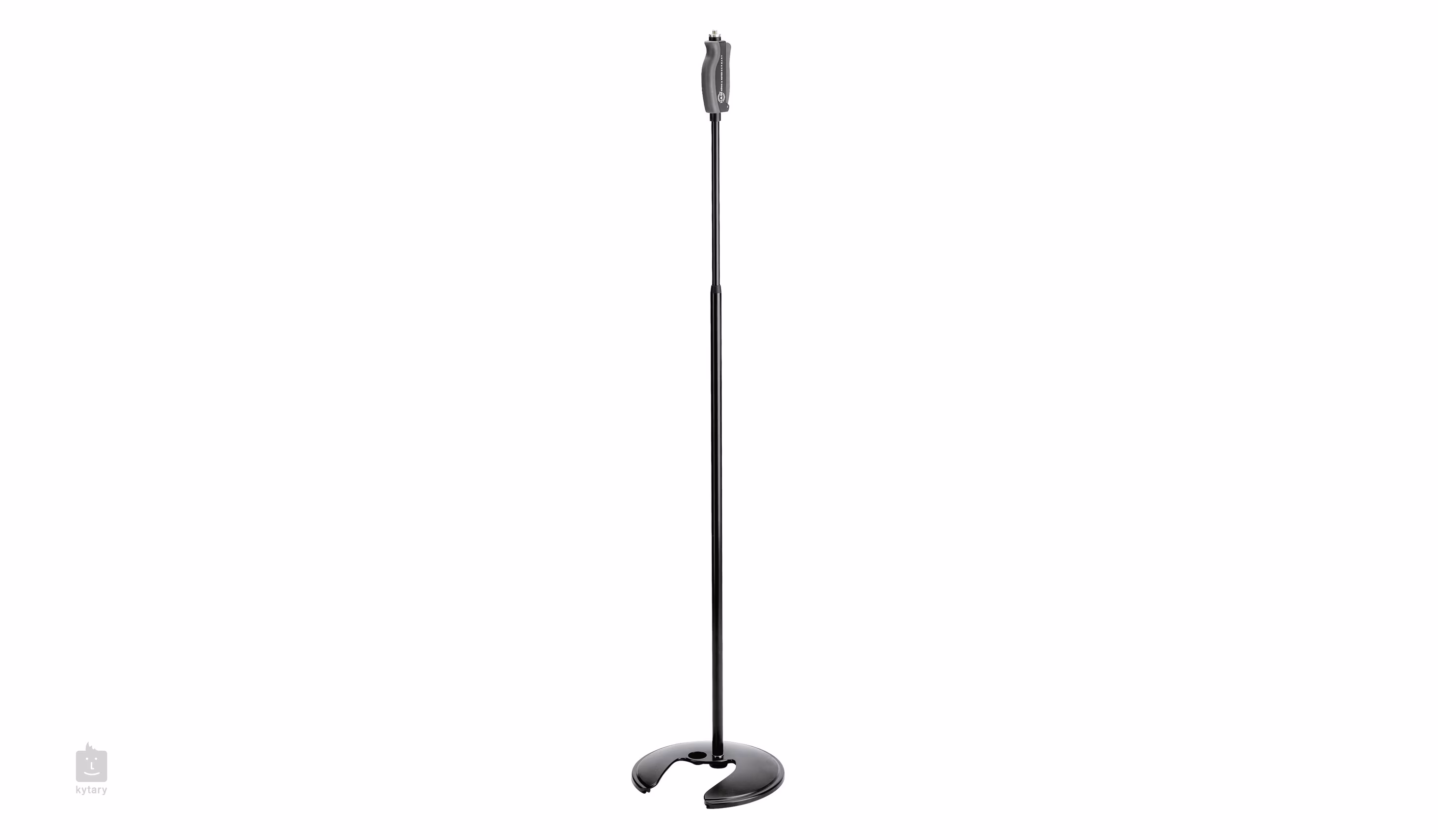 Stalowy statyw mikrofonowy z płaską żeliwną podstawą o specjalnej konstrukcji umożliwiającej sztaplowanie do pięciu statywów tego typu. Posiada również unikalny mechanizm blokujący, który pozwala na łatwą regulację wysokości przy użyciu tylko jednej ręki.