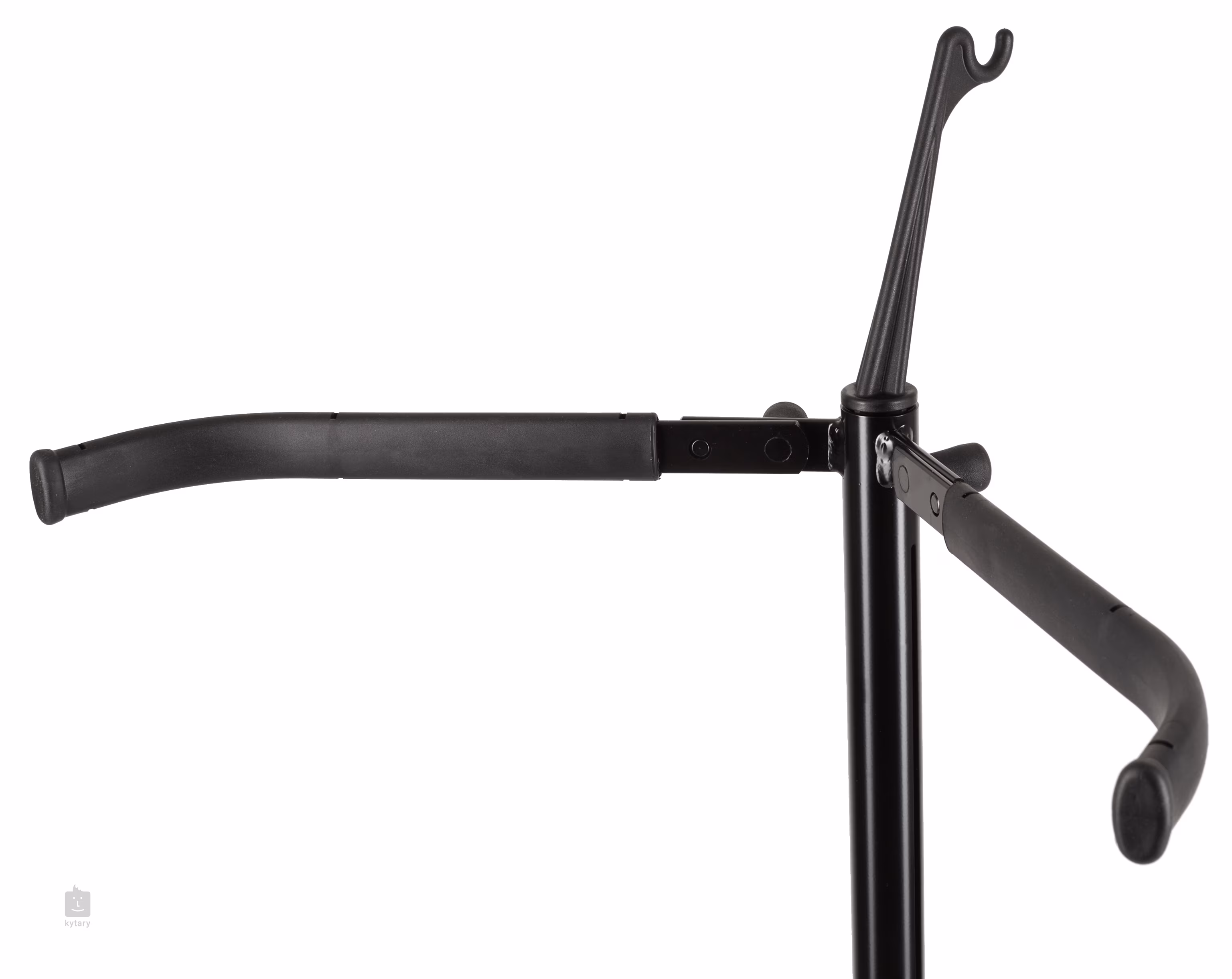 Wszystkie powierzchnie styku pokryte są ochronną warstwą gumową, która zapewnia maksymalną ochronę lakieru instrumentu przed uszkodzeniem. Dużą zaletą jest możliwość szybkiego i łatwego złożenia, dzięki czemu stojak nadaje się również do podróży. Oprócz uchwytu na smyczek jest on również wyposażony w podstawę na kolce, której kształt litery „V” automatycznie ustawia instrument w prawidłowej pozycji, ułatwiając umieszczenie wiolonczeli w stojaku.
