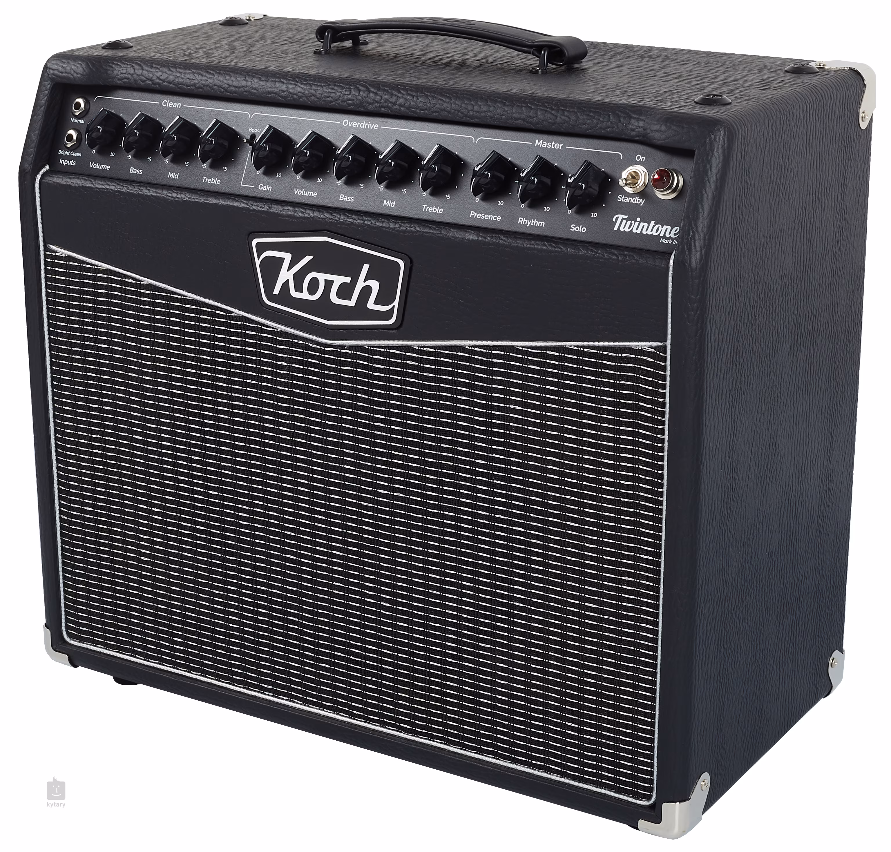 Koch Twintone III Combo to trzykanałowe, lampowe combo gitarowe o butikowej konstrukcji i mocy 50 W. Kombo oferuje dwa wejścia instrumentalne, przy czym wejście Bright Clean z redukcją o 6 dB jest szczególnie przydatne w przypadku przetworników o wyższych sygnałach wyjściowych. Zarówno kanał Clean, jak i Overdrive mają własne regulatory w postaci potencjometrów głośności, wzmocnienia oraz dwu- i trójpasmowego korektora. Kanał Overdrive umożliwia także przełączanie między brzmieniem typu crunch o niskim poziomie wzmocnienia a brzmieniem pełniejszym, bardziej nasyconym (przełącznik Gain Boost).