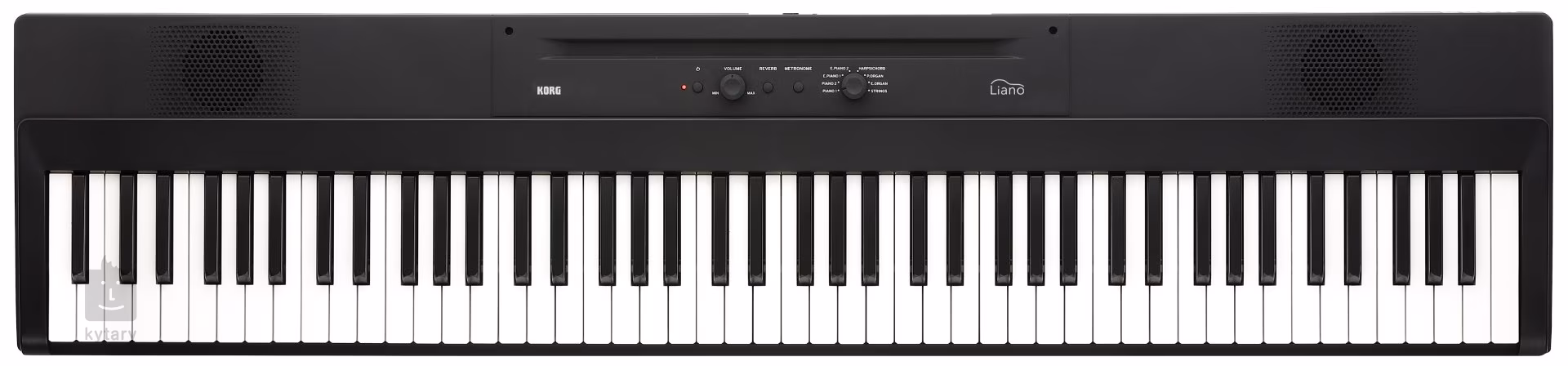 Wbudowany metronom pozwala ćwiczyć rytm i utrzymywać właściwe tempo podczas grania dowolnego utworu. Fortepian Korg Liano jest wyposażony w dwa głośniki o łącznej mocy 16 W, które zapewniają wystarczającą głośność i jakość dźwięku. Możesz więc cieszyć się bogatym brzmieniem nawet bez zewnętrznych głośników.