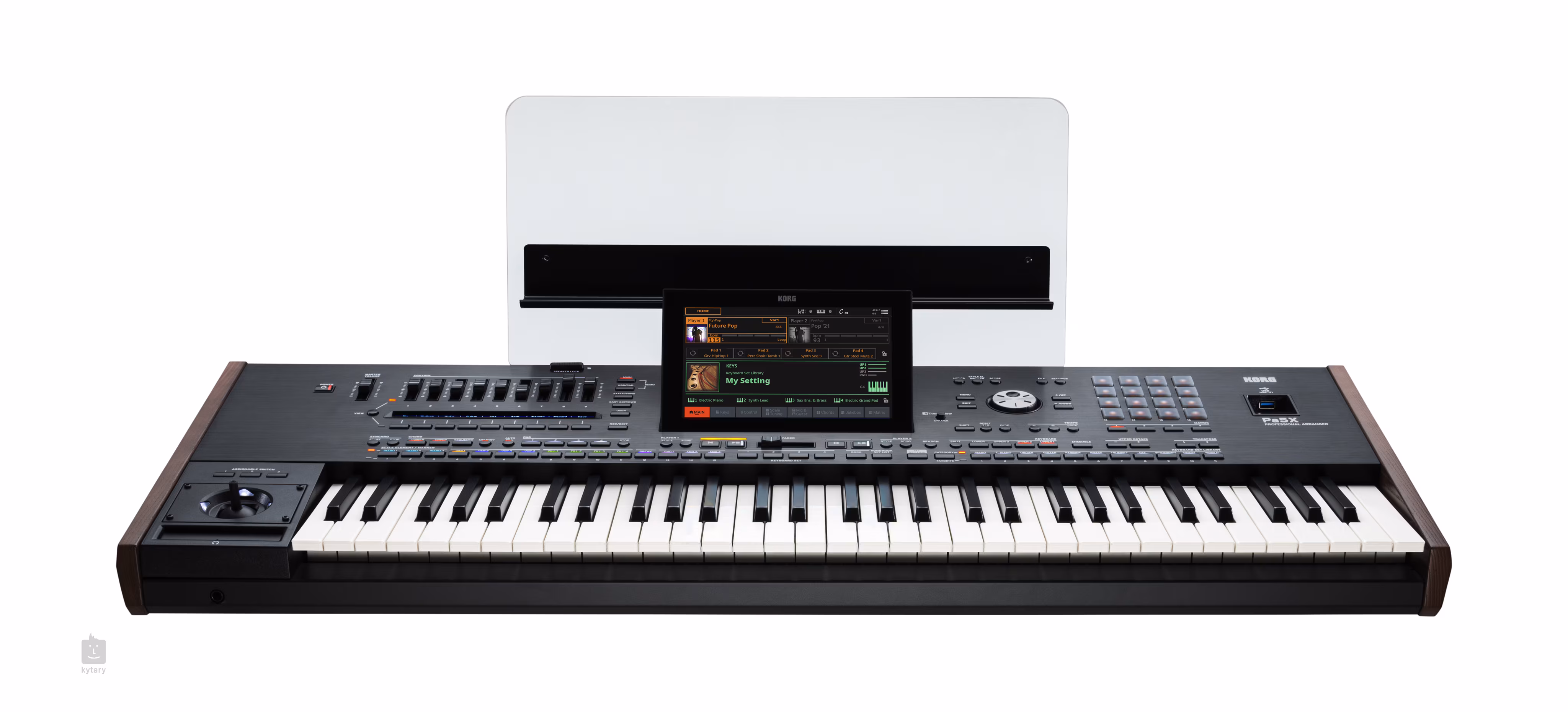Model Pa5X - 61 półważona klawiatura z aftertouch dla dodatkowej ekspresji. Sercem instrumentu jest wysokowydajny procesor dźwięku EDS-XP, który oferuje 24 oscylatory stereo i 160-głosową polifonię, a także wprowadza nowe, zaawansowane funkcje, takie jak Round-Robin dla bębnów i perkusji, Smooth Sound Transition, Sound-Controller 3 i wiele innych. Pa5X wyposażony jest w 8-calowy odchylany ekran dotykowy z bardzo zabawnym graficznym interfejsem użytkownika oraz w pełni programowalną sekcję kontrolera z 9 przyciskami i 9 suwakami. Można do niej przypisać dowolną funkcję, od głośności miksera do ustawień drążka, do wyciszenia mikrofonu i odwrócenia basu, do poleceń przewijania tekstu i innych. Istnieje szereg kontrolerów do ekspresyjnej gry w czasie rzeczywistym, a technologia DNC (Defined Nuance Control) firmy Korg jest źródłem wielu szczegółów dźwiękowych. Fadery, przełączniki, rzeczywiste i wirtualne matryce sterowania w czasie rzeczywistym, joystick i kontroler wstęgowy można przypisać do modulowania dowolnego parametru audio.