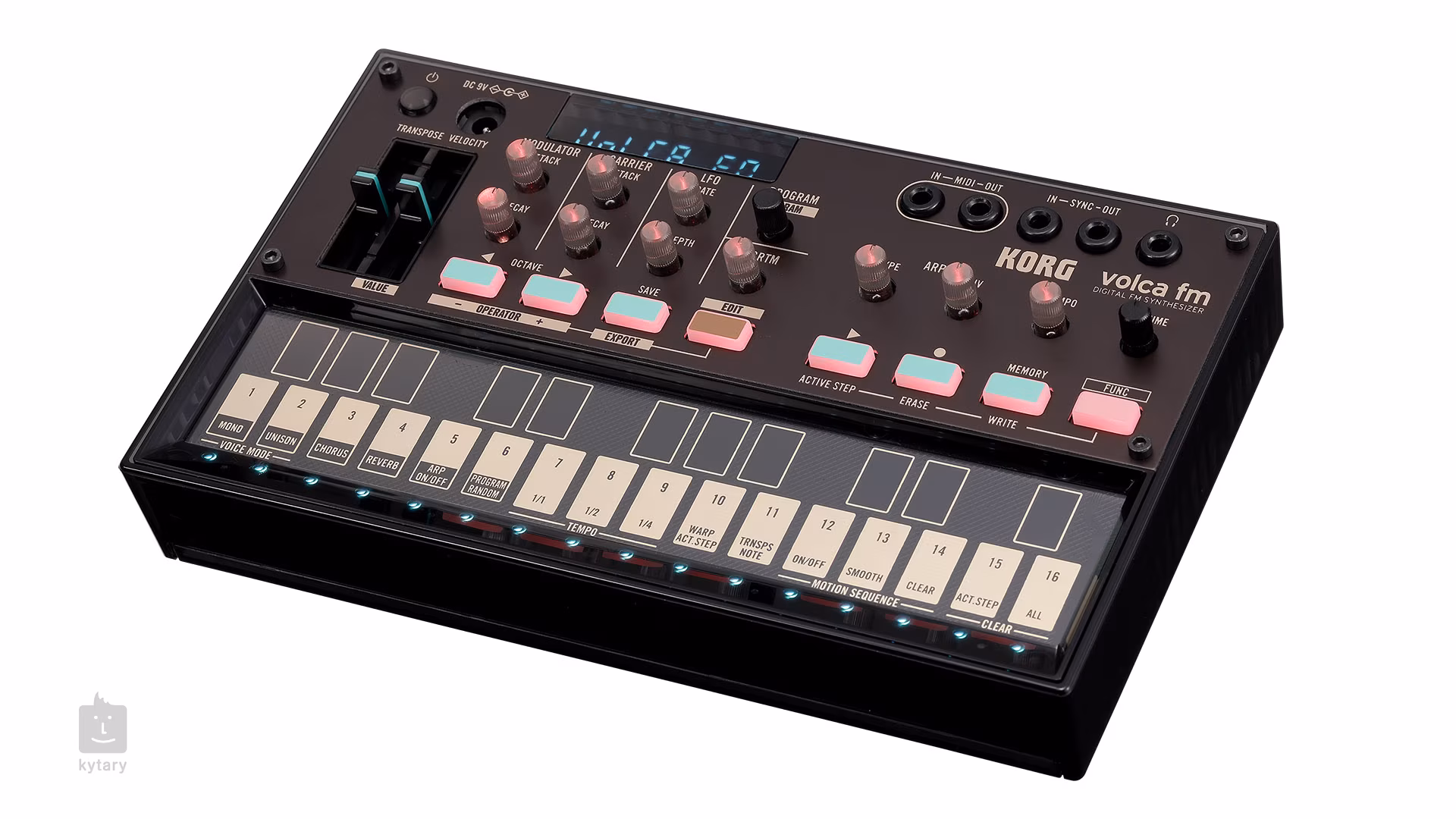 Zgodnie z tradycją firmy volca, nowy volca fm ma małą, przenośną konstrukcję, którą możesz zabrać ze sobą wszędzie. Volca fm jest doskonale praktyczny, posiada mnóstwo pokręteł do regulacji dźwięku w locie, działa na 6 baterii AA, posiada zintegrowany głośnik, a przy wadze zaledwie 360g (bez baterii) jest idealny do samodzielnego użytku. Dodatkowo, dzięki złączom SYNC IN-OUT i MIDI IN-OUT, bezproblemowo integruje się z Twoim live rigiem, studiem produkcyjnym i oczywiście każdym innym sprzętem volca!